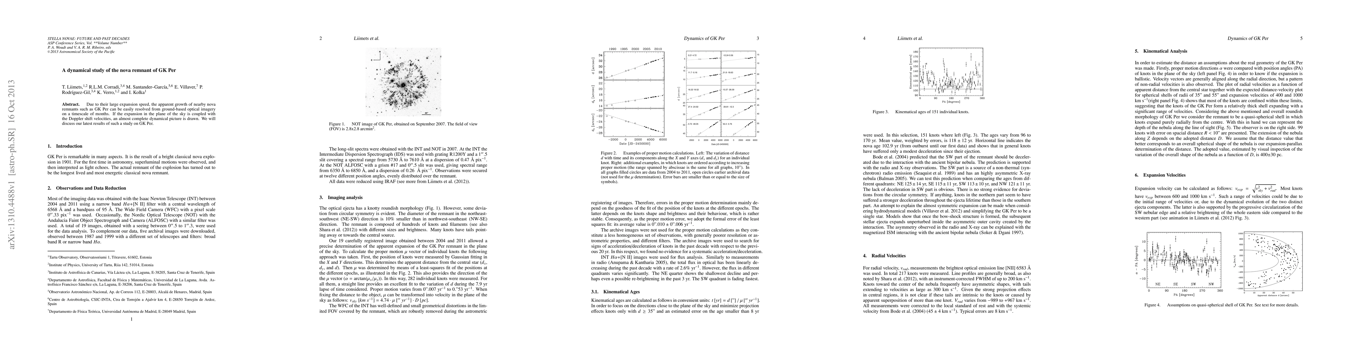 Due to their large expansion speed, the apparent growth of nearby nova remnants such as GK Per can be easily resolved from ground-based optical imagery on a timescale of months. If the expansion in the plane of the sky is coupled with the Doppler shift velocities, an almost complete dynamical picture is drawn. We will discuss our latest results of such a study on GK Per.