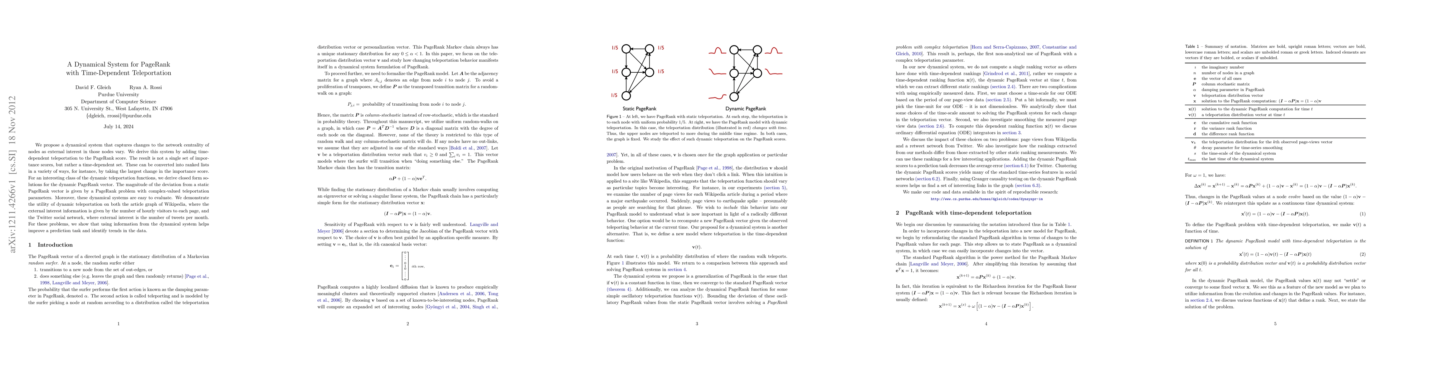 This paper introduces a dynamical system for PageRank that incorporates time-dependent teleportation, resulting in a time-varying set of node importance scores. The authors demonstrate its utility in predicting trends and improving tasks on Wikipedia and Twitter data.
