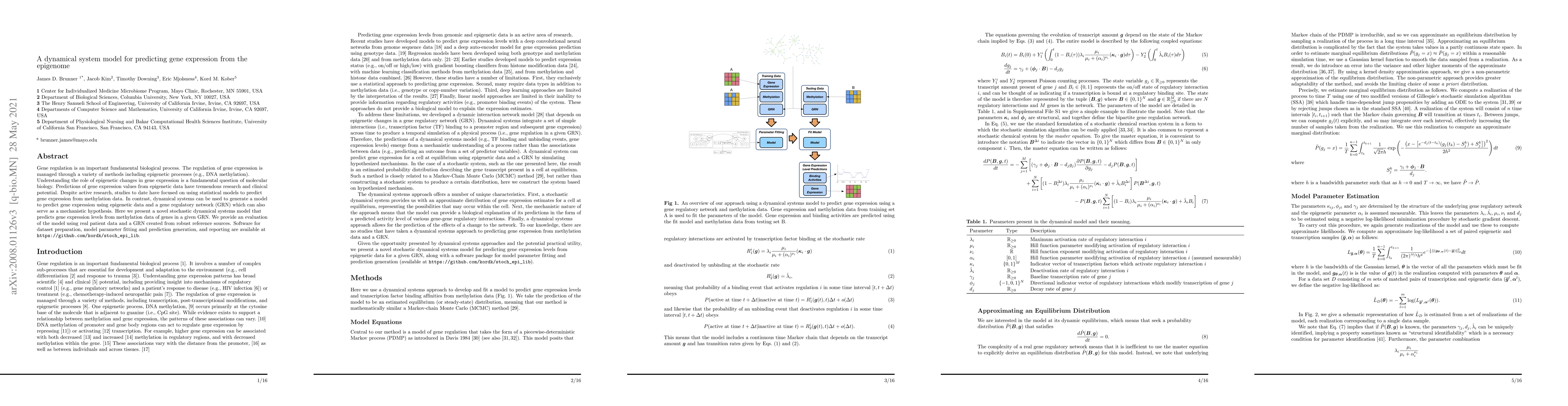 Gene regulation is an important fundamental biological process. The regulation of gene expression is managed through a variety of methods including epigenetic processes (e.g., DNA methylation). Understanding the role of epigenetic changes in gene expression is a fundamental question of molecular biology. Predictions of gene expression values from epigenetic data have tremendous research and clinical potential. Despite active research, studies to date have focused on using statistical models to predict gene expression from methylation data. In contrast, dynamical systems can be used to generate a model to predict gene expression using epigenetic data and a gene regulatory network (GRN) which can also serve as a mechanistic hypothesis. Here we present a novel stochastic dynamical systems model that predicts gene expression levels from methylation data of genes in a given GRN. We provide an evaluation of the model using real patient data and a GRN created from robust reference sources. Software for dataset preparation, model parameter fitting and prediction generation, and reporting are available at \verb|https://github.com/kordk/stoch_epi_lib|.