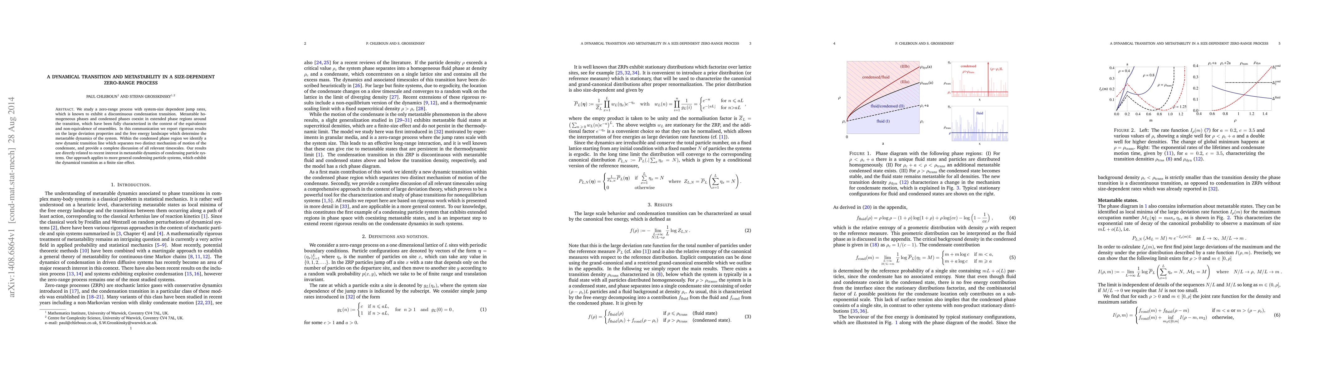 This paper investigates a size-dependent zero-range process, highlighting a discontinuous condensation transition and identifying metastable dynamics. It reveals a new dynamic transition line within the condensed phase, distinguishing two motion mechanisms and detailing relevant timescales, thus contributing to understanding metastable dynamics in particle systems.