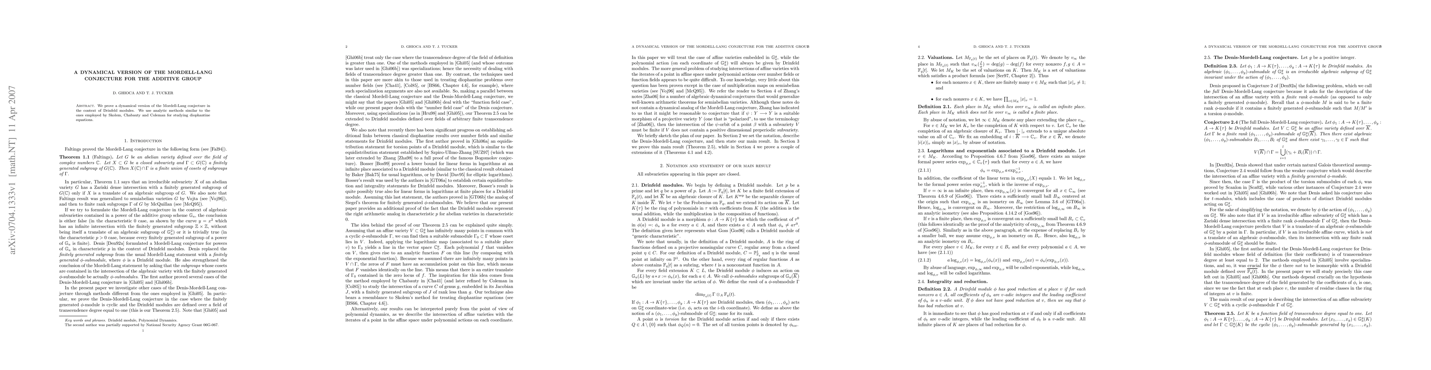 Researchers prove a dynamical version of the Mordell-Lang conjecture for Drinfeld modules using analytic methods similar to Skolem, Chabauty, and Coleman's approaches.