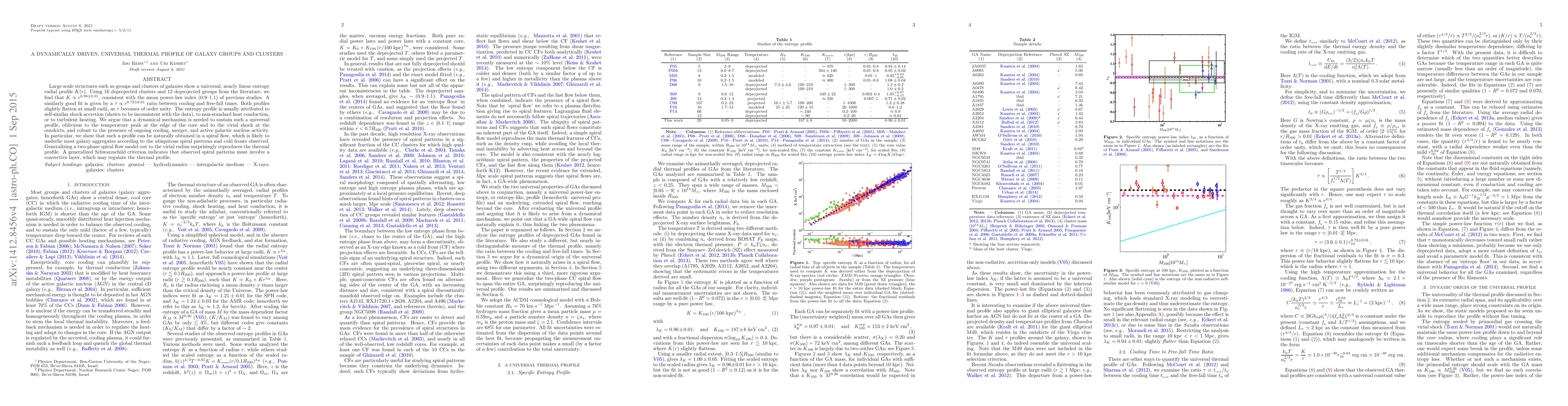 Large scale structures such as groups and clusters of galaxies show a universal, nearly linear entropy radial profile $K(r)$. Using deprojected 16 clusters and 12 groups from the literature, we find that $K\propto r^{0.96\pm0.01}$, consistent with the mean power-law index $(0.9\mbox{--}1.1)$ of previous studies. A similarly good fit is given by a $\tau\propto r^{0.72\pm0.01}$ ratio between cooling and free-fall times. Both profiles slightly flatten at small radii, as $\tau$ becomes of order unity. The entropy profile is usually attributed to self-similar shock accretion (shown to be inconsistent with the data), to non-standard heat conduction, or to turbulent heating. We argue that a dynamical mechanism is needed to sustain such a universal profile, oblivious to the temperature peak at the edge of the core and to the virial shock at the outskirts, and robust to the presence of ongoing cooling, merger, and active galactic nucleus (AGN) activity. In particular, we show that such a profile can be naturally obtained in a spiral flow, which is likely to underlie most galaxy aggregates according to the ubiquitous spiral patterns and cold fronts observed. Generalizing a two-phase spiral flow model out to the virial radius surprisingly reproduces the thermal profile. A generalized Schwarzschild criterion indicates that observed spiral patterns must involve a convective layer, which may regulate the thermal profile.
