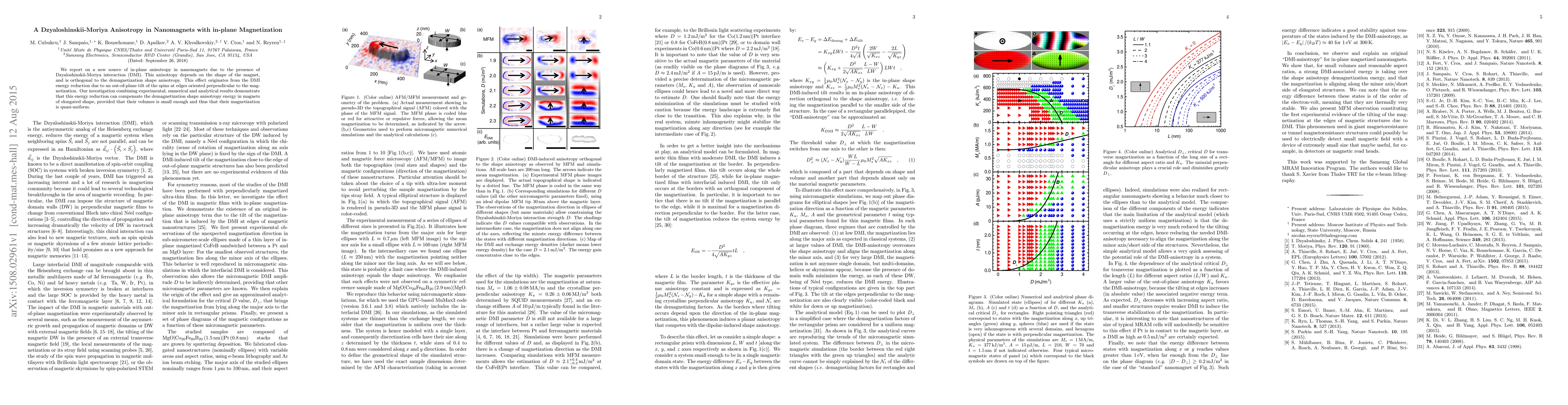 We report on a new source of in-plane anisotropy in nanomagnets due to the presence of Dzyaloshinskii-Moriya interaction (DMI). This anisotropy depends on the shape of the magnet, and is orthogonal to the demagnetization shape anisotropy. This effect originates from the DMI energy reduction due to an out-of-plane tilt of the spins at edges oriented perpendicular to the magnetization. Our investigation combining experimental, numerical and analytical results demonstrate that this energy reduction can compensate the demagnetization shape anisotropy energy in magnets of elongated shape, provided that their volumes is small enough and thus that their magnetization is quasi-uniform.