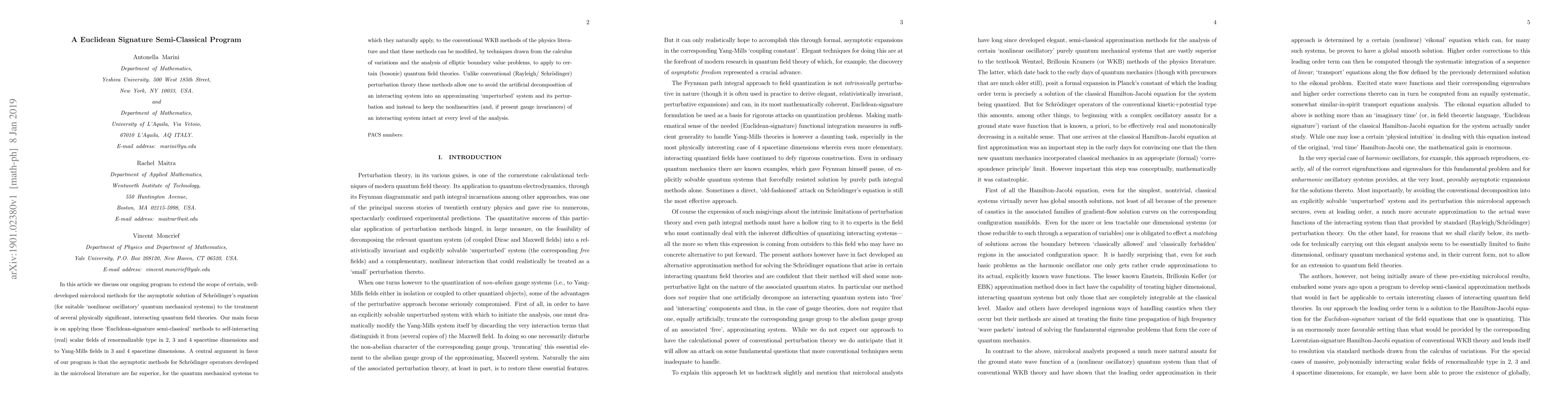 In this article we discuss our ongoing program to extend the scope of certain, well-developed microlocal methods for the asymptotic solution of Schr\"{o}dinger's equation (for suitable `nonlinear oscillatory' quantum mechanical systems) to the treatment of several physically significant, interacting quantum field theories. Our main focus is on applying these `Euclidean-signature semi-classical' methods to self-interacting (real) scalar fields of renormalizable type in 2, 3 and 4 spacetime dimensions and to Yang-Mills fields in 3 and 4 spacetime dimensions. A central argument in favor of our program is that the asymptotic methods for Schr\"{o}dinger operators developed in the microlocal literature are far superior, for the quantum mechanical systems to which they naturally apply, to the conventional WKB methods of the physics literature and that these methods can be modified, by techniques drawn from the calculus of variations and the analysis of elliptic boundary value problems, to apply to certain (bosonic) quantum field theories. Unlike conventional (Rayleigh/ Schr\"{o}dinger) perturbation theory these methods allow one to avoid the artificial decomposition of an interacting system into an approximating `unperturbed' system and its perturbation and instead to keep the nonlinearities (and, if present gauge invariances) of an interacting system intact at every level of the analysis.