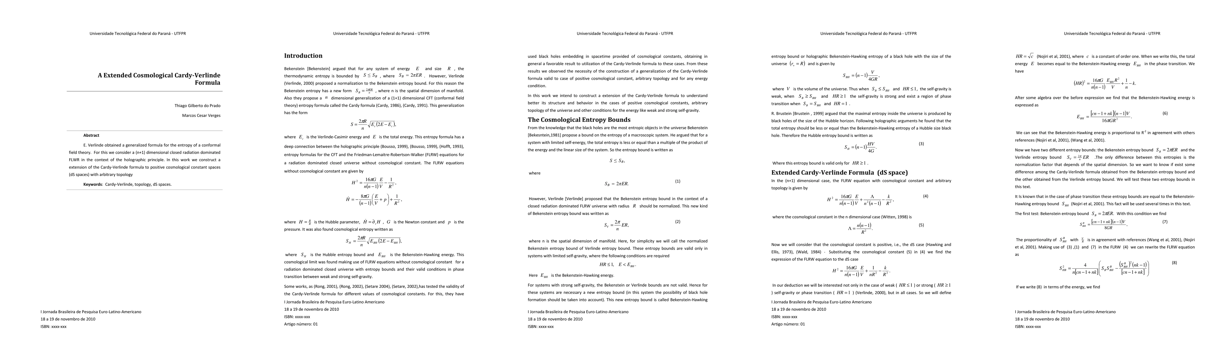 Summary: This research extends the Cardy-Verlinde formula to describe entropy in (n+1) dimensional radiation-dominated FLRW spaces with positive cosmological constants, incorporating the holographic principle and arbitrary topological structures. The focus is on de Sitter (dS) spaces within the framework of conformal field theory.