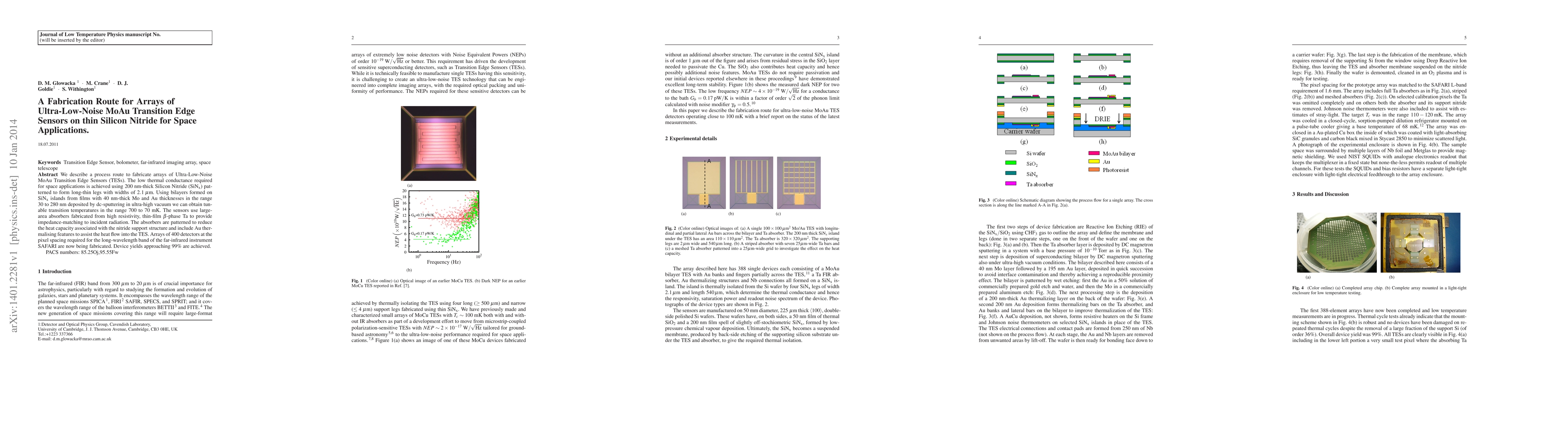 We describe a process route to fabricate arrays of Ultra-low-Noise MoAu Transition Edge Sensors (TESs). The low thermal conductance required for space applications is achieved using 200 nm-thick Silicon Nitride (SiNx ) patterned to form long-thin legs with widths of 2.1 {\mu}m. Using bilayers formed on SiNx islands from films with 40 nm-thick Mo and Au thicknesses in the range 30 to 280 nm deposited by dc-sputtering in ultra-high vacuum we can obtain tunable transition temperatures in the range 700 to 70 mK. The sensors use large-area absorbers fabricated from high resistivity, thin-film beta-phase Ta to provide impedance-matching to incident radiation. The absorbers are patterned to reduce the heat capacity associated with the nitride support structure and include Au thermalizing features to assist the heat flow into the TES. Arrays of 400 detectors at the pixel spacing required for the long-wavelength band of the far-infrared instrument SAFARI are now being fabricated. Device yields approaching 99% are achieved.