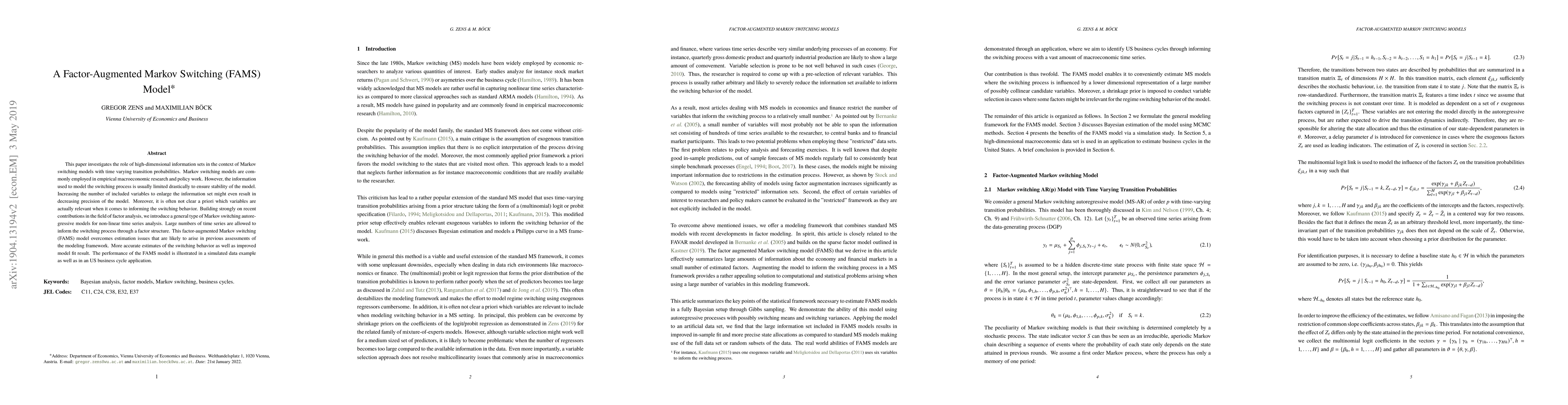 The paper introduces a Factor-Augmented Markov Switching (FAMS) model that incorporates high-dimensional information sets to inform the switching process through a factor structure, overcoming estimation issues in traditional Markov switching models.