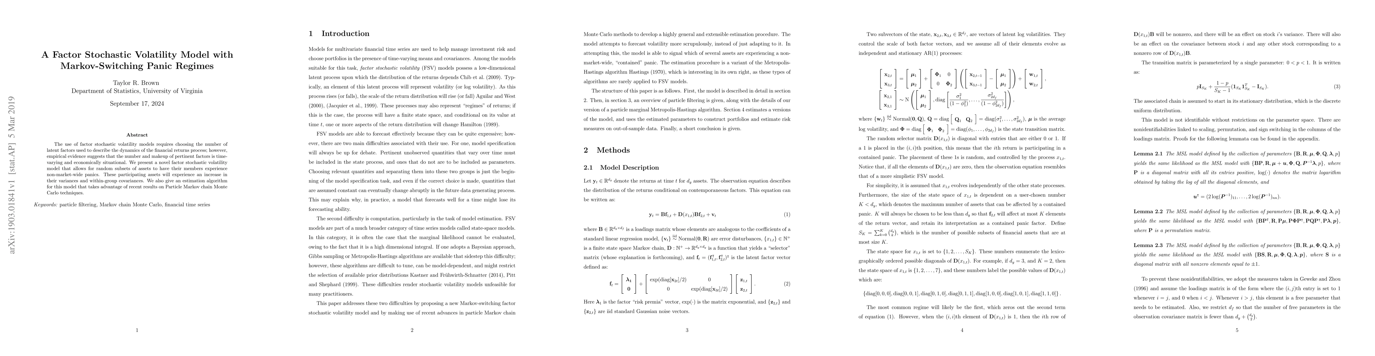 The use of factor stochastic volatility models requires choosing the number of latent factors used to describe the dynamics of the financial returns process; however, empirical evidence suggests that the number and makeup of pertinent factors is time-varying and economically situational. We present a novel factor stochastic volatility model that allows for random subsets of assets to have their members experience non-market-wide panics. These participating assets will experience an increase in their variances and within-group covariances. We also give an estimation algorithm for this model that takes advantage of recent results on Particle Markov chain Monte Carlo techniques.