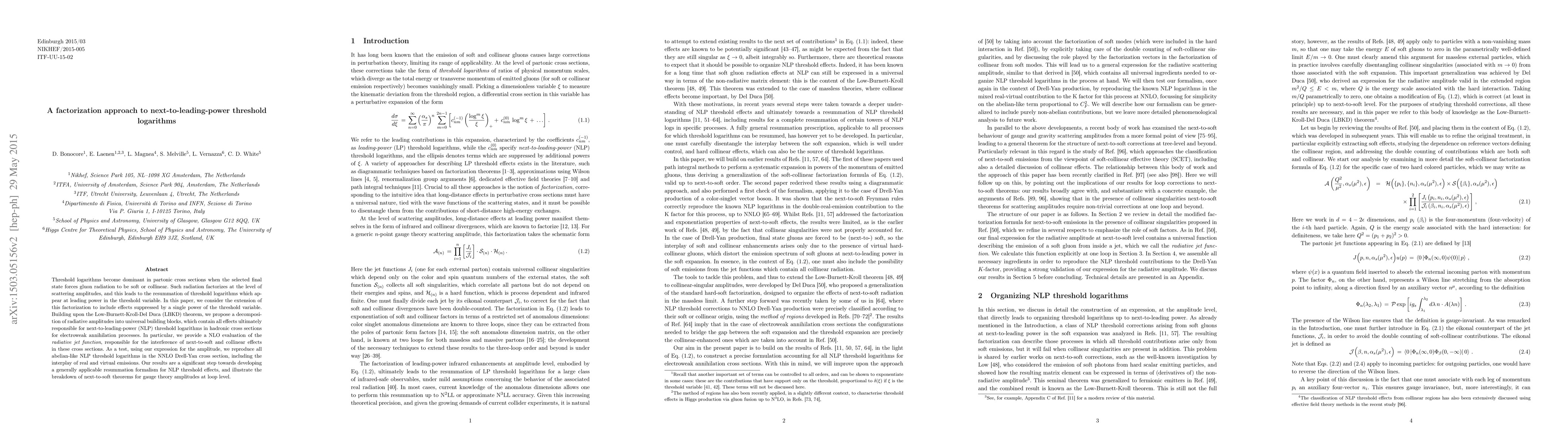 This paper develops a factorization approach to next-to-leading-power (NLP) threshold logarithms in partonic cross sections, extending the Low-Burnett-Kroll-Del Duca theorem to include single-power suppressed effects. The authors propose a decomposition of radiative amplitudes into universal components, providing a NLO evaluation of the "radiative jet function" and demonstrating the breakdown of next-to-soft theorems at loop level.
