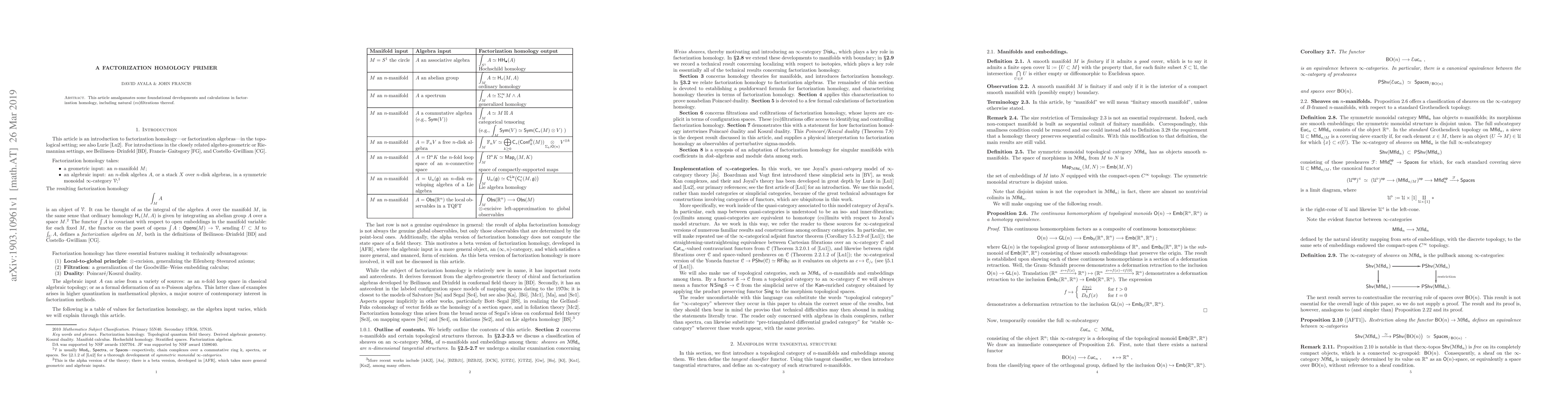 This chapter amalgamates some foundational developments and calculations in factorization homology.