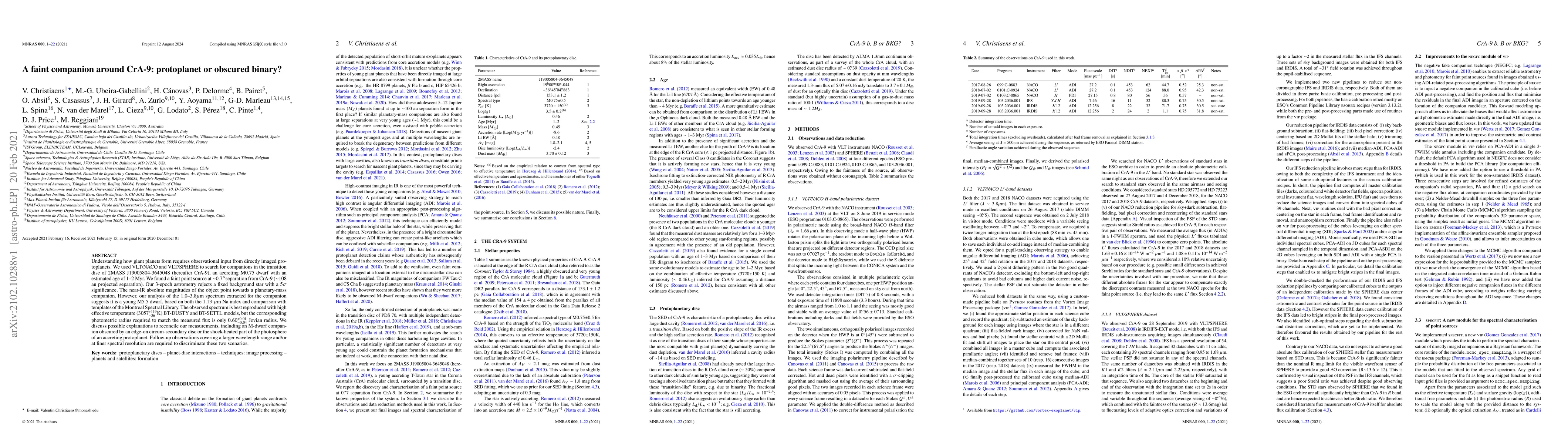 Understanding how giant planets form requires observational input from directly imaged protoplanets. We used VLT/NACO and VLT/SPHERE to search for companions in the transition disc of 2MASS J19005804-3645048 (hereafter CrA-9), an accreting M0.75 dwarf with an estimated age of 1-2 Myr. We found a faint point source at $\sim$0.7'' separation from CrA-9 ($\sim$108 au projected separation). Our 3-epoch astrometry rejects a fixed background star with a $5\sigma$ significance. The near-IR absolute magnitudes of the object point towards a planetary-mass companion. However, our analysis of the 1.0-3.8$\mu$m spectrum extracted for the companion suggests it is a young M5.5 dwarf, based on both the 1.13-$\mu$m Na index and comparison with templates of the Montreal Spectral Library. The observed spectrum is best reproduced with high effective temperature ($3057^{+119}_{-36}$K) BT-DUSTY and BT-SETTL models, but the corresponding photometric radius required to match the measured flux is only $0.60^{+0.01}_{-0.04}$ Jovian radius. We discuss possible explanations to reconcile our measurements, including an M-dwarf companion obscured by an edge-on circum-secondary disc or the shock-heated part of the photosphere of an accreting protoplanet. Follow-up observations covering a larger wavelength range and/or at finer spectral resolution are required to discriminate these two scenarios.