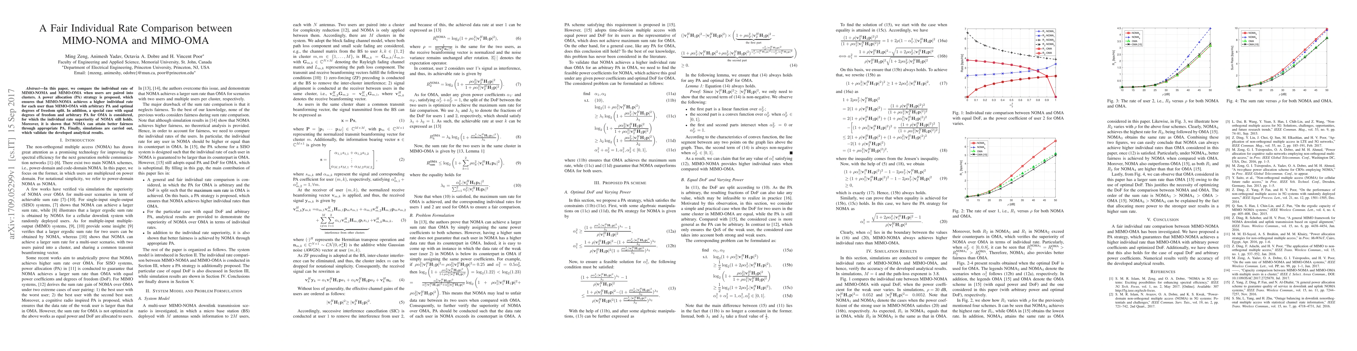 This paper compares the individual rate performance of MIMO-NOMA and MIMO-OMA under user clustering, demonstrating that MIMO-NOMA achieves higher rates with a proposed power allocation strategy, while also showing that NOMA can attain better fairness through appropriate power allocation, with simulations validating the analytical results.