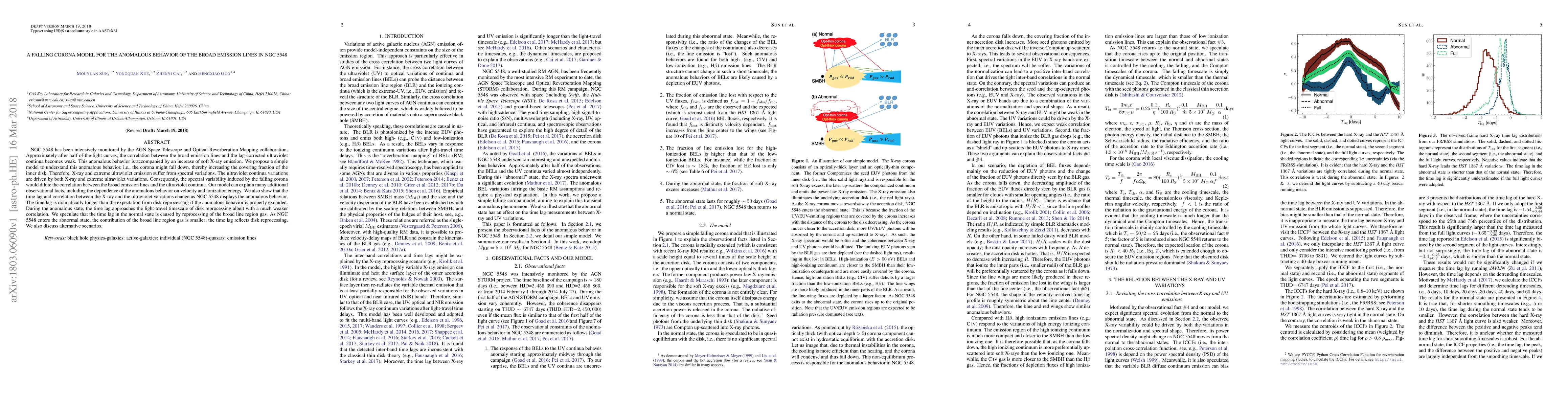 A research paper proposes that a falling corona in a black hole can explain anomalous behavior of emission lines in NGC 5548, including increased soft X-ray emission and reduced correlation between broad emission lines and ultraviolet continua.