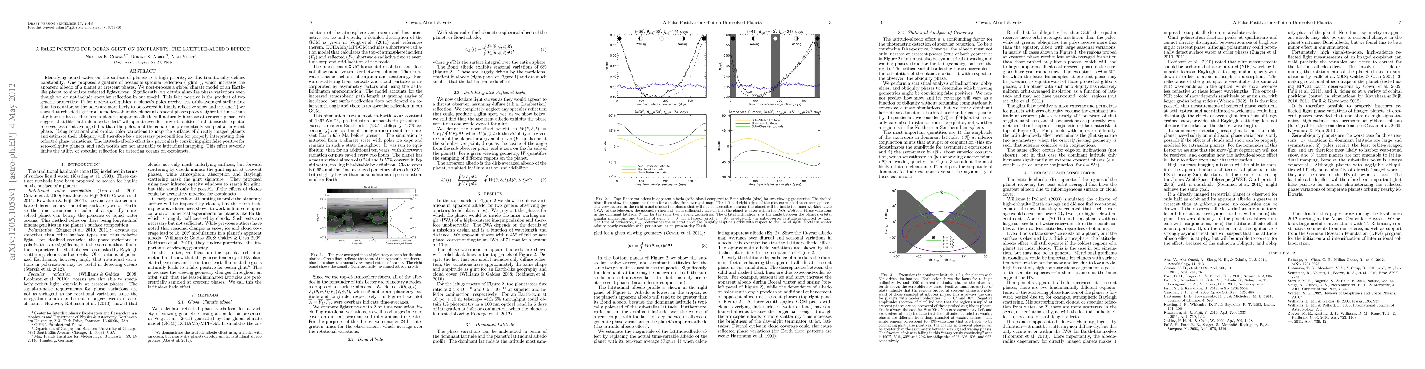 Identifying liquid water on the surface of planets is a high priority, as this traditionally defines habitability. One proposed signature of oceans is specular reflection ("glint"), which increases the apparent albedo of a planet at crescent phases. We post-process a global climate model of an Earth-like planet to simulate reflected lightcurves. Significantly, we obtain glint-like phase variations even though we do not include specular reflection in our model. This false positive is the product of two generic properties: 1) for modest obliquities, a planet's poles receive less orbit-averaged stellar flux than its equator, so the poles are more likely to be covered in highly reflective snow and ice, and 2) we show that reflected light from a modest-obliquity planet at crescent phases probes higher latitudes than at gibbous phases, therefore a planet's apparent albedo will naturally increase at crescent phase. We suggest that this "latitude-albedo effect" will operate even for large obliquities: in that case the equator receives less orbit-averaged flux than the poles, and the equator is preferentially sampled at crescent phase. Using rotational and orbital color variations to map the surfaces of directly imaged planets and estimate their obliquity will therefore be a necessary pre-condition for properly interpreting their reflected phase variations. The latitude-albedo effect is a particularly convincing glint false positive for zero-obliquity planets, and such worlds are not amenable to latitudinal mapping. This effect severely limits the utility of specular reflection for detecting oceans on exoplanets.