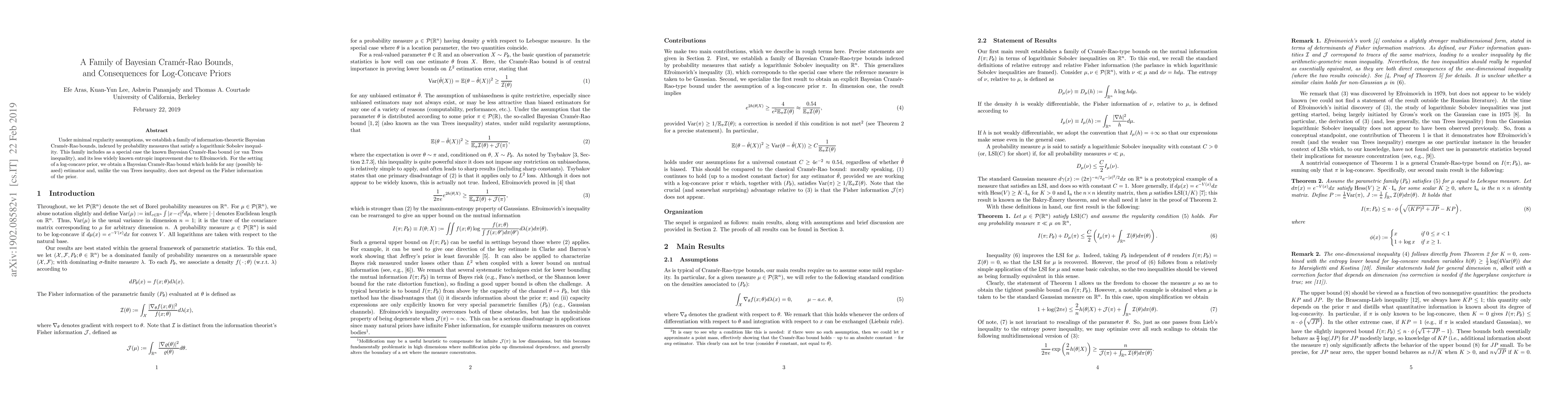 Under minimal regularity assumptions, we establish a family of information-theoretic Bayesian Cram\'er-Rao bounds, indexed by probability measures that satisfy a logarithmic Sobolev inequality. This family includes as a special case the known Bayesian Cram\'er-Rao bound (or van Trees inequality), and its less widely known entropic improvement due to Efroimovich. For the setting of a log-concave prior, we obtain a Bayesian Cram\'er-Rao bound which holds for any (possibly biased) estimator and, unlike the van Trees inequality, does not depend on the Fisher information of the prior.