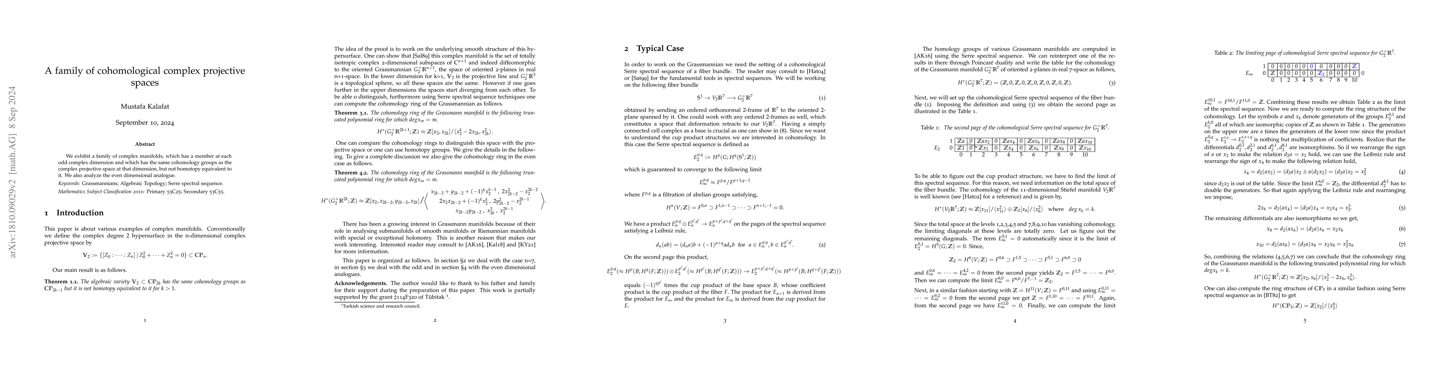 We exhibit a family of complex manifolds, which has a member at each odd complex dimension and which has the same cohomology groups as the complex projective space at that dimension, but not homotopy equivalent to it. We also analyze the even dimensional analogue.