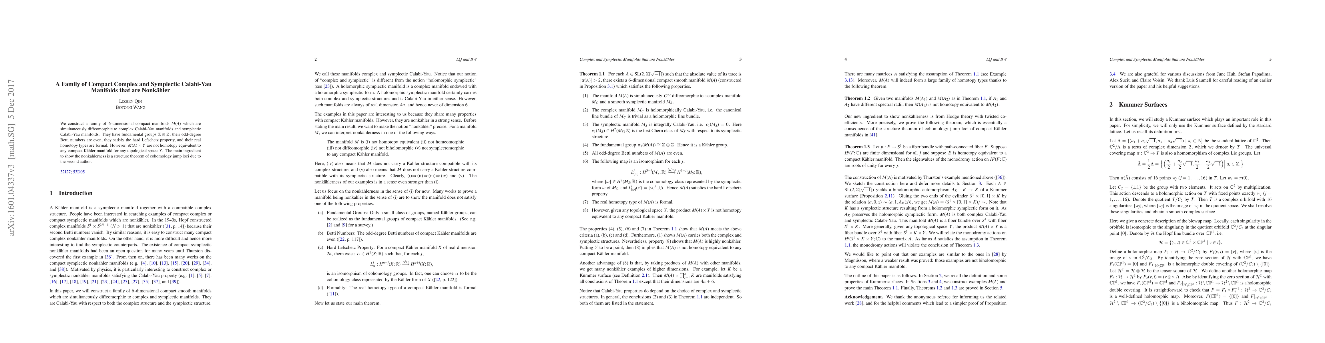 This paper constructs a family of $6$-dimensional compact complex-symplectic Calabi-Yau manifolds $M(A)$ that are non-Kähler, possessing unique topological properties like even odd-dimensional Betti numbers and formal real homotopy types. Despite their complex and symplectic characteristics, they cannot be homotopically equivalent to any compact Kähler manifold.