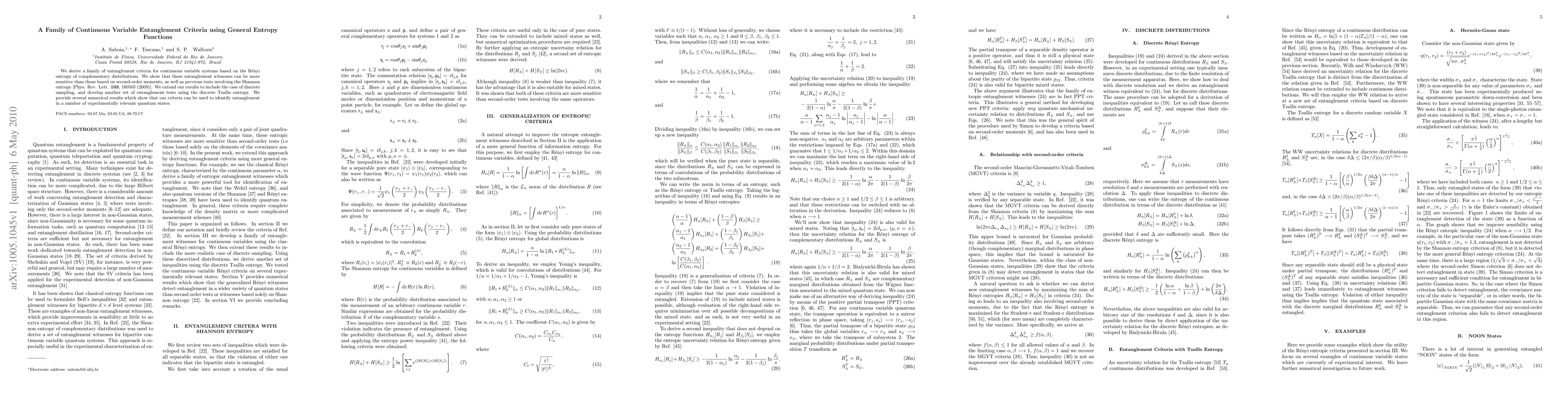 This paper presents a new set of entanglement criteria for continuous variable systems based on Rényi entropy, demonstrating their greater sensitivity compared to traditional methods. The authors also extend their approach to discrete sampling using Tsallis entropy, providing numerical evidence of their effectiveness in identifying entanglement in various quantum states.