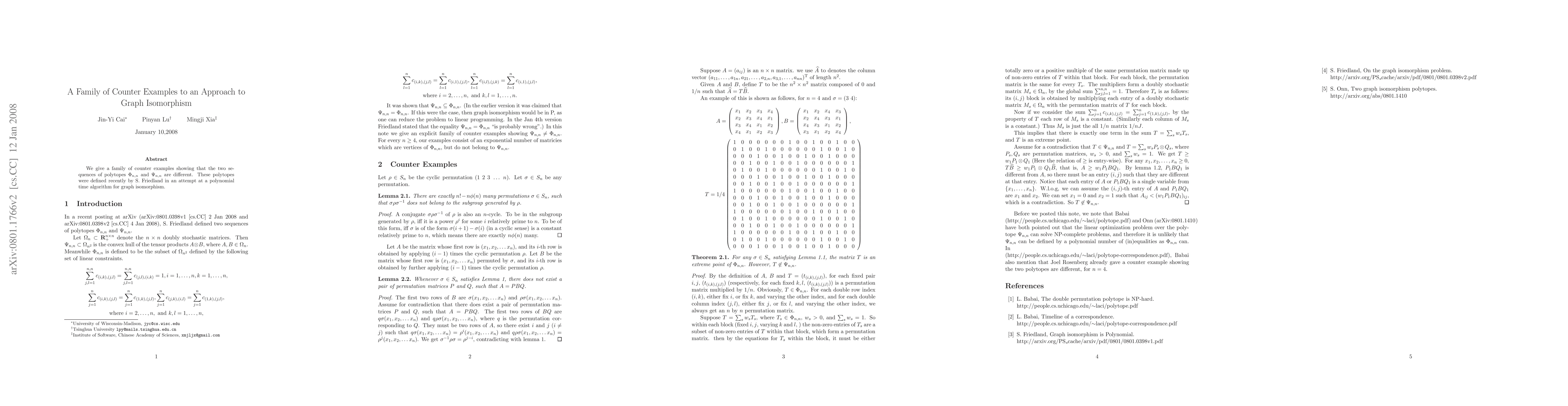 We give a family of counter examples showing that the two sequences of polytopes $\Phi_{n,n}$ and $\Psi_{n,n}$ are different. These polytopes were defined recently by S. Friedland in an attempt at a polynomial time algorithm for graph isomorphism.