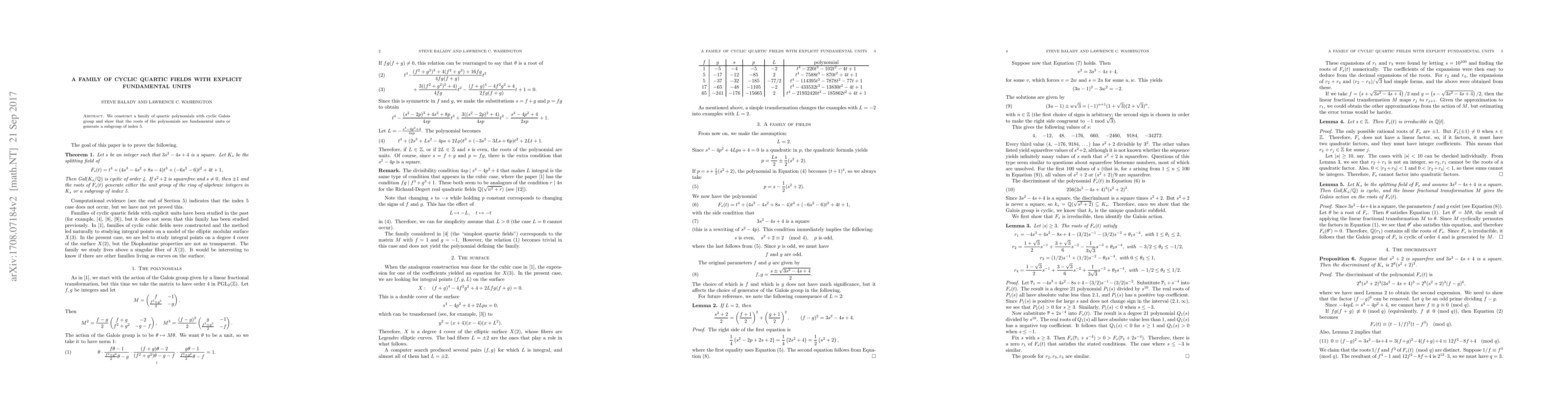 We construct a family of quartic polynomials with cyclic Galois group and show that the roots of the polynomials are fundamental units or generate a subgroup of index 5.