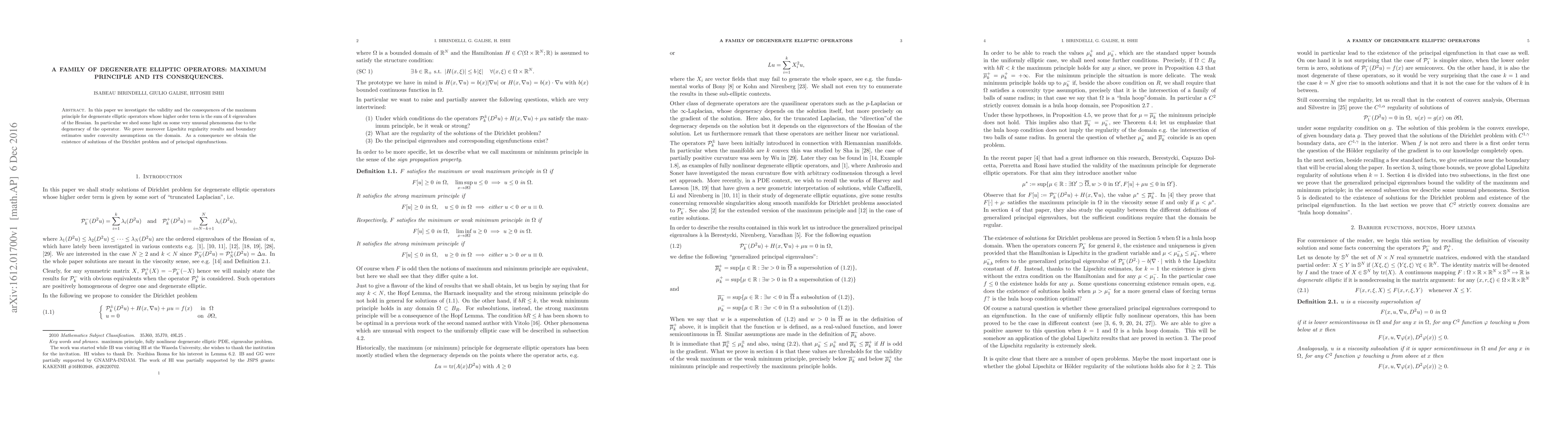 In this paper we investigate the validity and the consequences of the maximum principle for degenerate elliptic operators whose higher order term is the sum of "k" eigenvalues of the Hessian. In particular we shed some light on some very unusual phenomena due to the degeneracy of the operator. We prove moreover Lipschitz regularity results and boundary estimates for problems in convex domains which are intersections of ball of same radius. We prove also that smooth bounded strictly convex domains are part of this class. As a consequence we obtain the existence of solutions of the Dirichlet problem and of principal eigenfunctions.