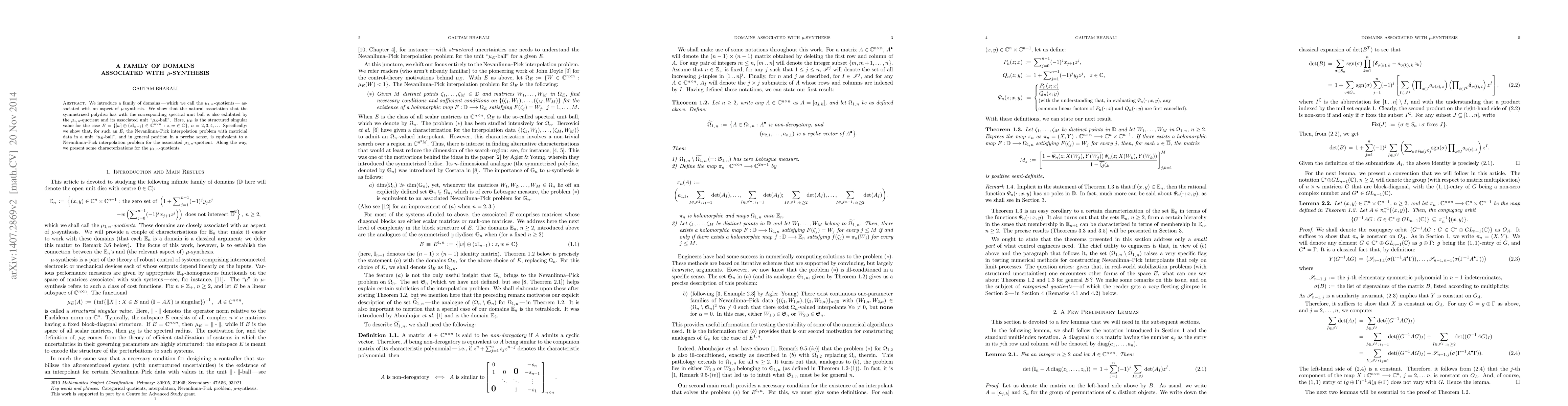 This paper introduces $\mu_{1,n}$-quotients linked to $\mu$-synthesis, demonstrating a connection between these domains and the symmetrized polydisc. It shows that the Nevanlinna-Pick interpolation problem in a unit "$\mu_E$-ball" is equivalent to one in the associated $\mu_{1,n}$-quotient, providing characterizations for these new domains.