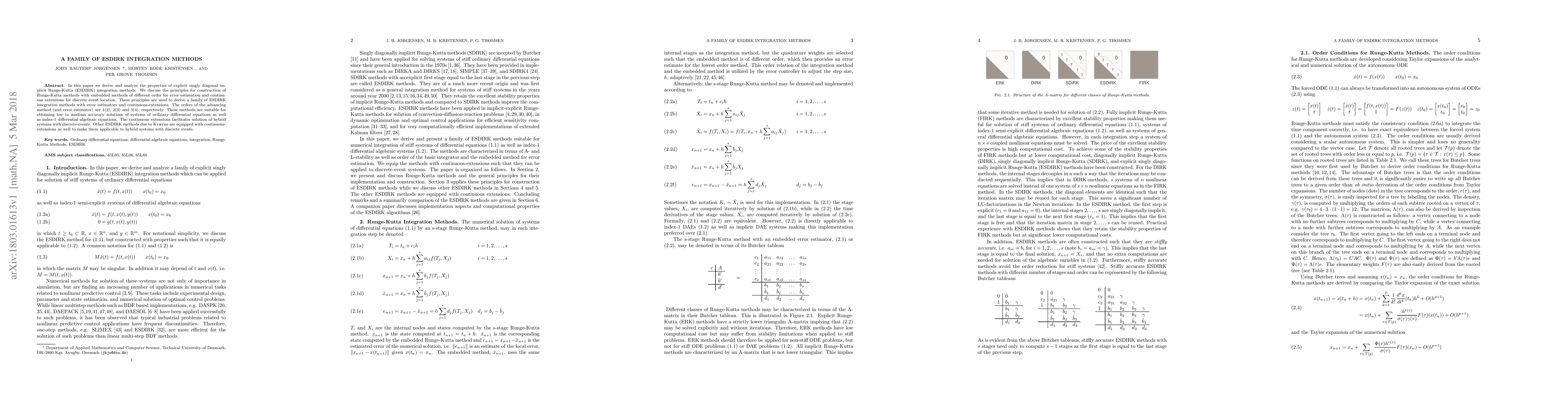Researchers developed a family of ESDIRK integration methods with various orders for solving ordinary differential equations and hybrid systems with discrete events. These methods provide low to medium accuracy solutions and continuous extensions for hybrid system simulations.