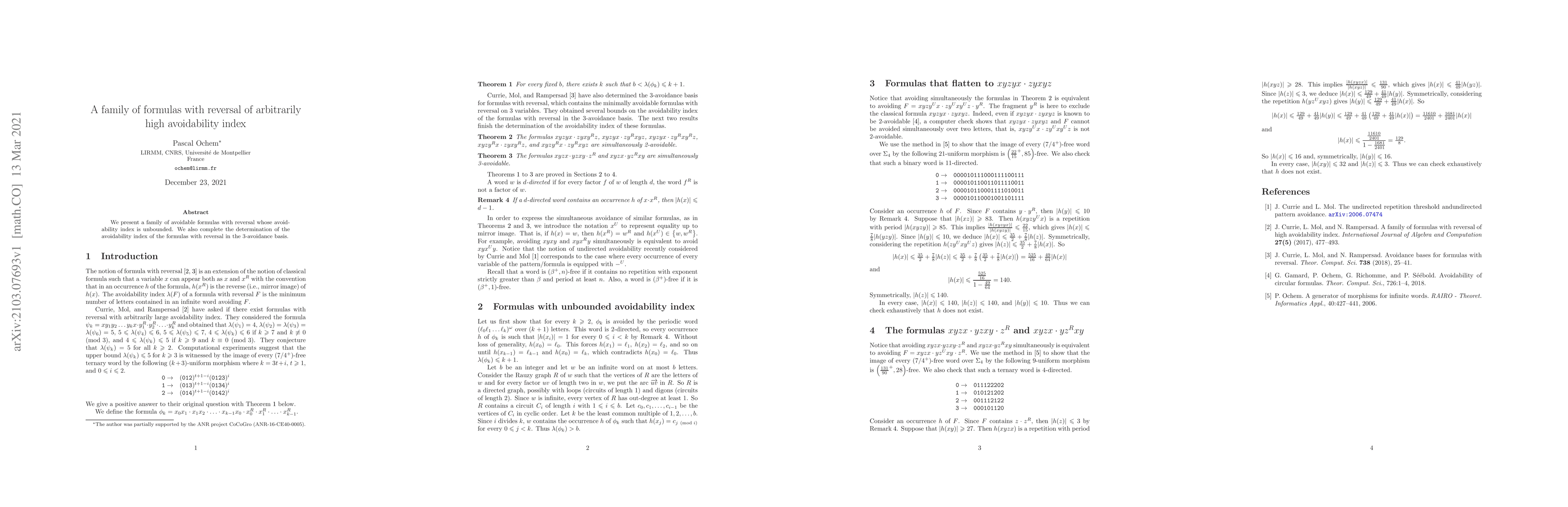 We present a family of avoidable formulas with reversal whose avoidability index is unbounded. We also complete the determination of the avoidability index of the formulas with reversal in the 3-avoidance basis.