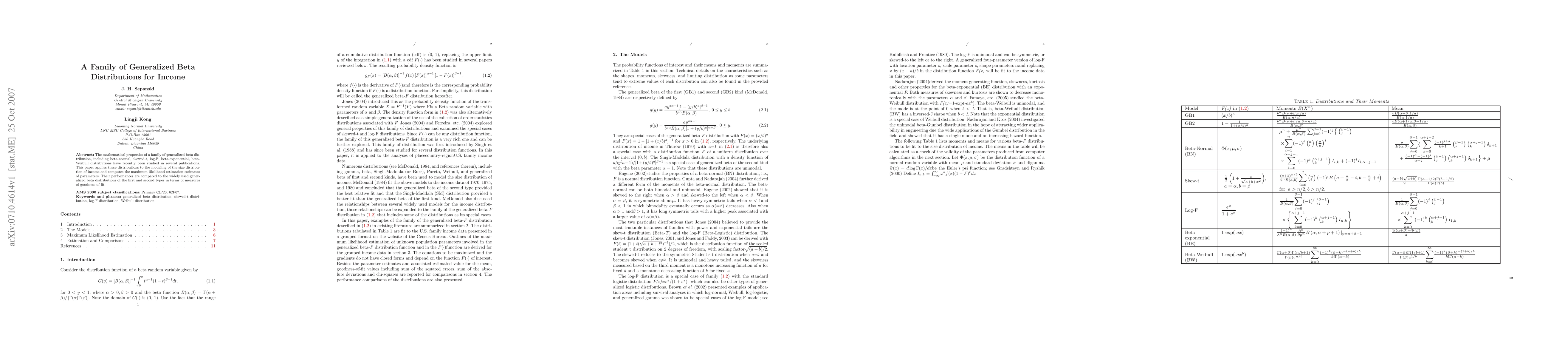 This paper explores a family of generalized beta distributions for modeling income size distribution, including beta-normal, skewed-t, log-F, beta-exponential, and beta-Weibull distributions. It computes maximum likelihood estimates and compares their fit to traditional generalized beta distributions.