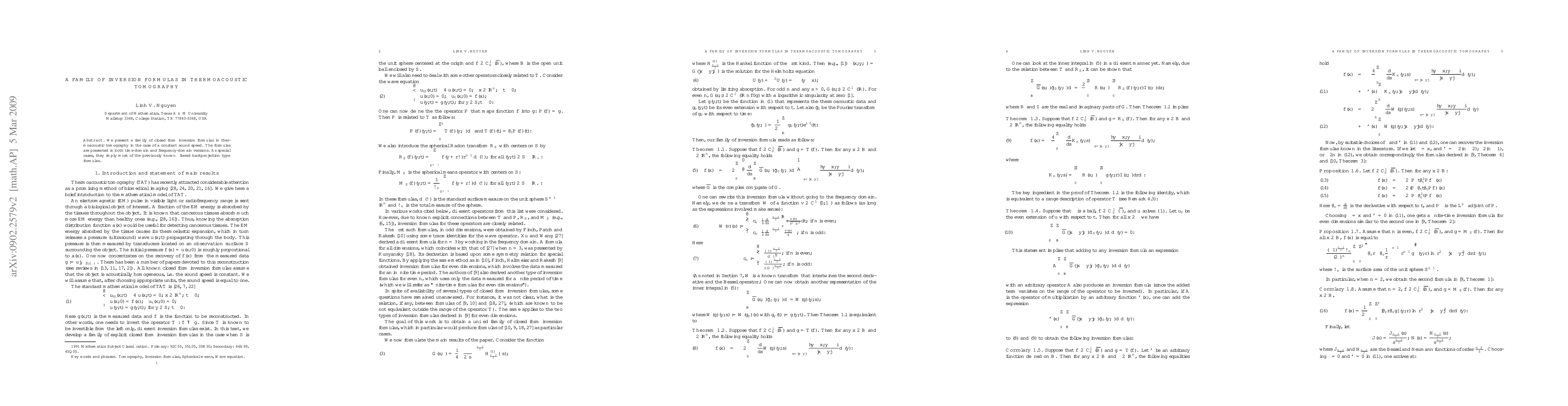 This paper introduces a set of closed-form inversion formulas for thermoacoustic tomography under constant sound speed, available in both time-domain and frequency-domain versions, which encompass most existing filtered backprojection methods.