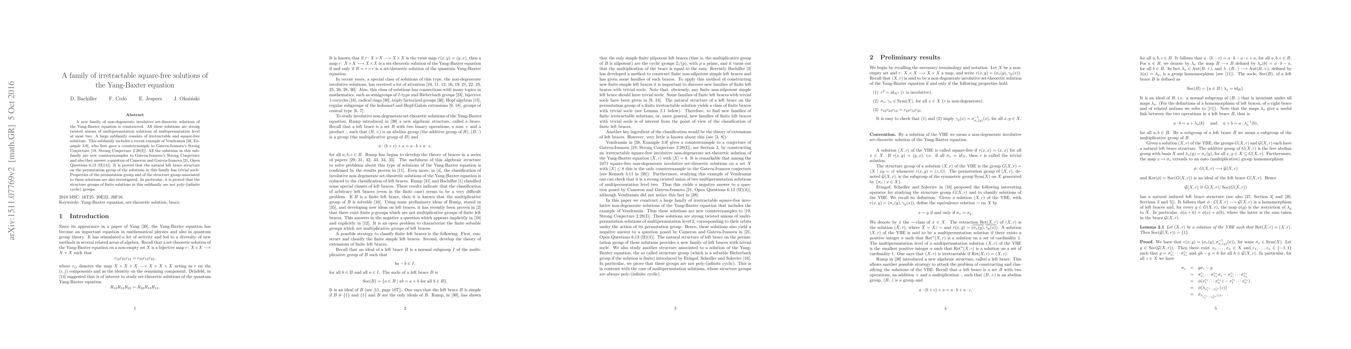 This paper constructs a new family of irretractable, square-free solutions to the Yang-Baxter equation, showing they are counterexamples to Gateva-Ivanova's Strong Conjecture and addressing a question posed by Cameron and Gateva-Ivanova. It also examines the properties of the associated permutation and structure groups.