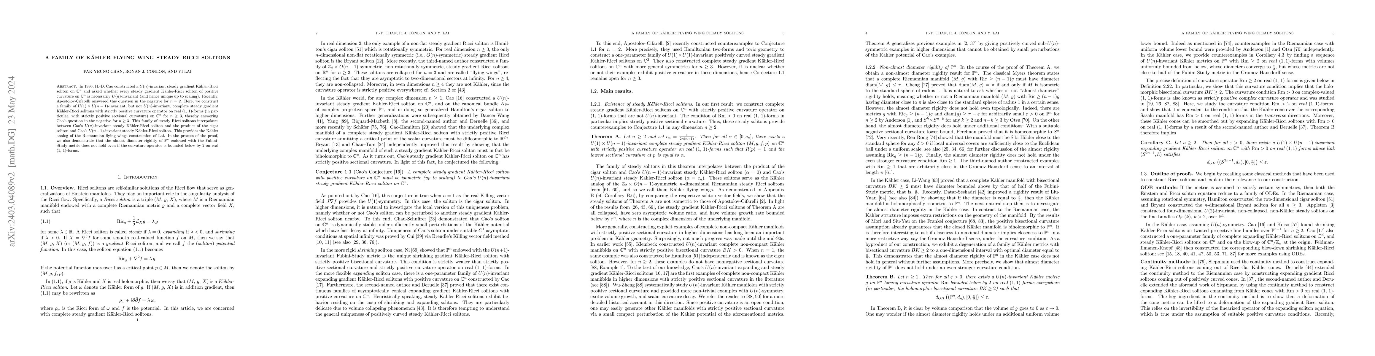 In $1996$, H.-D. Cao constructed a $U(n)$-invariant steady gradient K\"ahler-Ricci soliton on $\mathbb{C}^{n}$ and asked whether every steady gradient K\"ahler-Ricci soliton of positive curvature on $\mathbb{C}^{n}$ is necessarily $U(n)$-invariant (and hence unique up to scaling). Recently, Apostolov-Cifarelli answered this question in the negative for $n=2$. Here, we construct a family of $U(1)\times U(n-1)$-invariant, but not $U(n)$-invariant, complete steady gradient K\"ahler-Ricci solitons with strictly positive curvature operator on real $(1,\,1)$-forms (in particular, with strictly positive sectional curvature) on $\mathbb{C}^{n}$ for $n\geq3$, thereby answering Cao's question in the negative for $n\geq3$. This family of steady Ricci solitons interpolates between Cao's $U(n)$-invariant steady K\"ahler-Ricci soliton and the product of the cigar soliton and Cao's $U(n-1)$-invariant steady K\"ahler-Ricci soliton. This provides the K\"ahler analog of the Riemannian flying wings construction of Lai. In the process of the proof, we also demonstrate that the almost diameter rigidity of $\mathbb{P}^{n}$ endowed with the Fubini-Study metric does not hold even if the curvature operator is bounded below by $2$ on real $(1,\,1)$-forms.