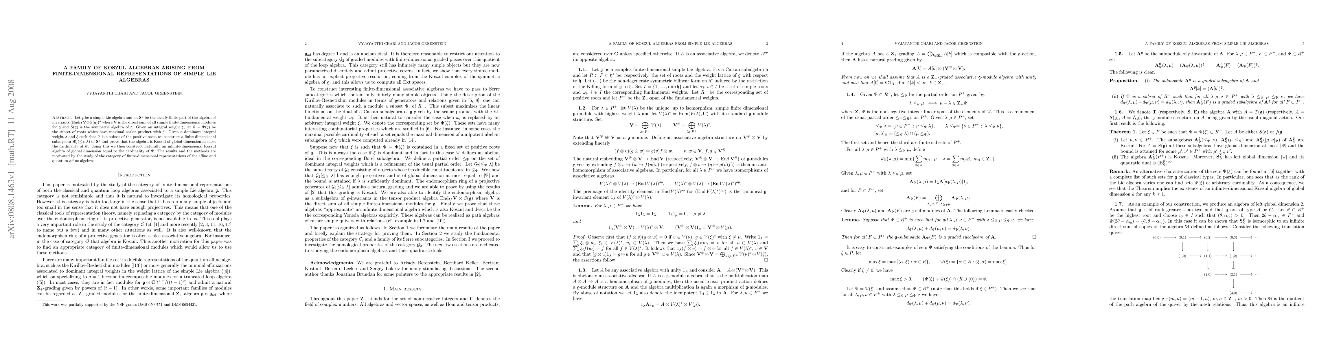 This research paper introduces a family of Koszul algebras arising from finite-dimensional representations of simple Lie algebras, with global dimension at most the cardinality of a subset of roots, and constructs an infinite-dimensional Koszul algebra with global dimension equal to this cardinality.