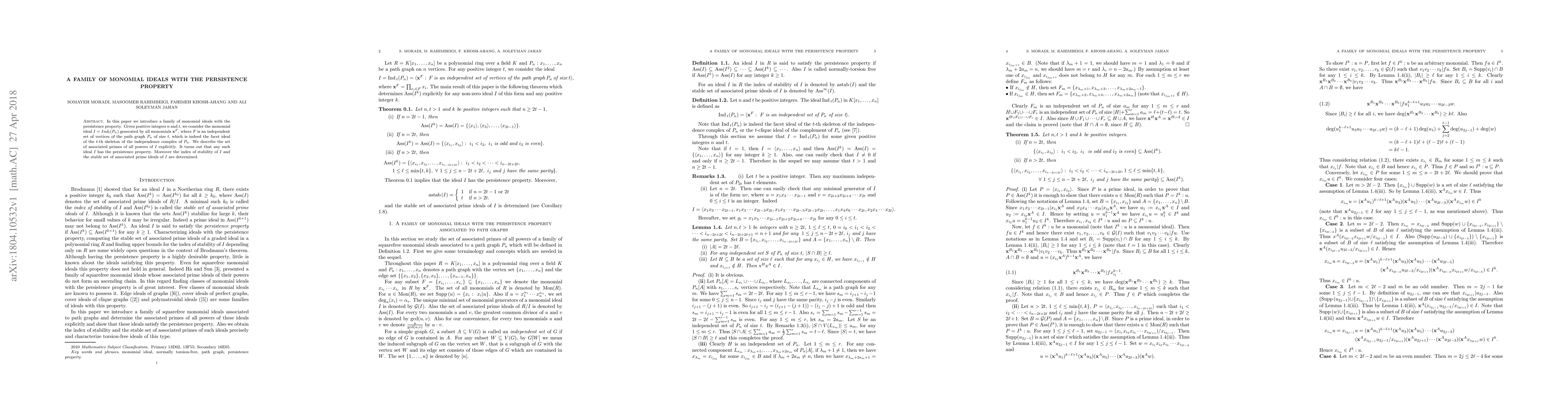 In this paper we introduce a family of monomial ideals with the persistence property. Given positive integers $n$ and $t$, we consider the monomial ideal $I=Ind_t(P_n)$ generated by all monomials $\textbf{x} ^F$, where $F$ is an independent set of vertices of the path graph $P_n$ of size $t$, which is indeed the facet ideal of the $t$-th skeleton of the independence complex of $P_n$. We describe the set of associated primes of all powers of $I$ explicitly. It turns out that any such ideal $I$ has the persistence property. Moreover the index of stability of $I$ and the stable set of associated prime ideals of $I$ are determined.