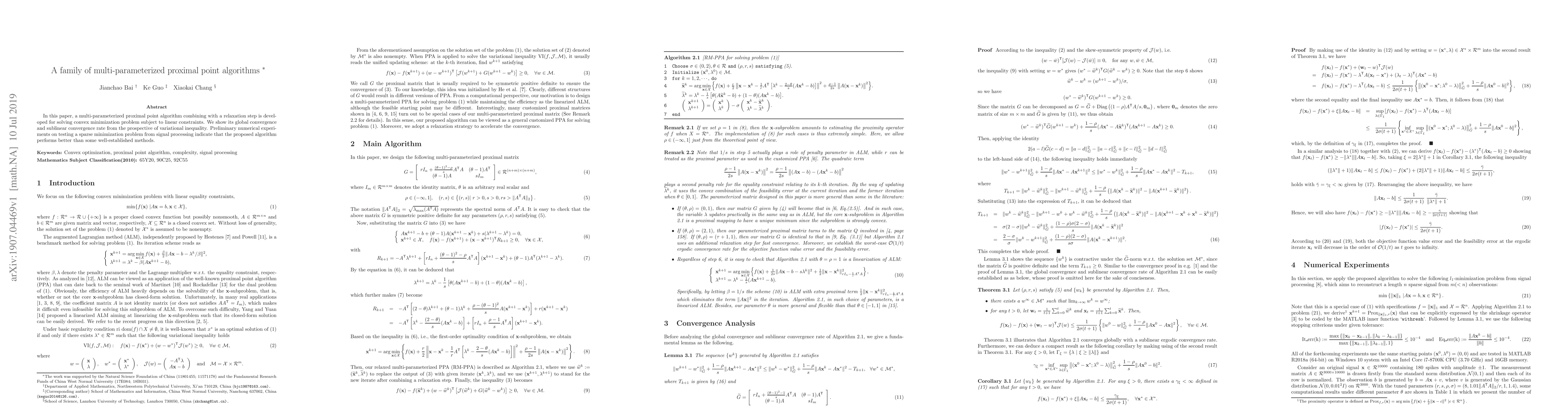 In this paper, a multi-parameterized proximal point algorithm combining with a relaxation step is developed for solving convex minimization problem subject to linear constraints. We show its global convergence and sublinear convergence rate from the prospective of variational inequality. Preliminary numerical experiments on testing a sparse minimization problem from signal processing indicate that the proposed algorithm performs better than some well-established methods