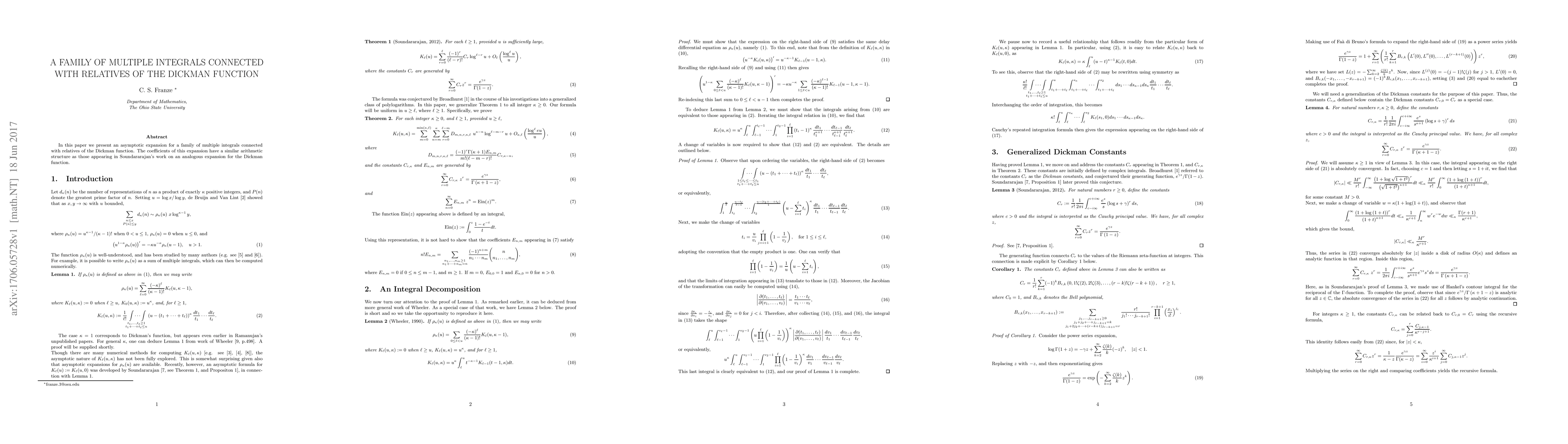Researchers found an asymptotic expansion for a family of multiple integrals connected to relatives of the Dickman function, similar to previous work on the Dickman function's expansion.