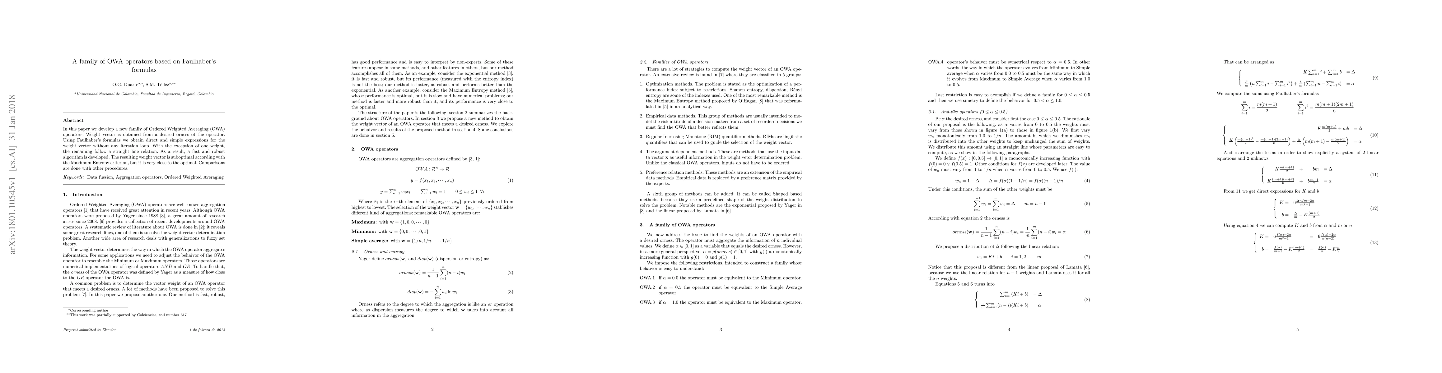 In this paper we develop a new family of Ordered Weighted Averaging (OWA) operators. Weight vector is obtained from a desired orness of the operator. Using Faulhaber's formulas we obtain direct and simple expressions for the weight vector without any iteration loop. With the exception of one weight, the remaining follow a straight line relation. As a result, a fast and robust algorithm is developed. The resulting weight vector is suboptimal according with the Maximum Entropy criterion, but it is very close to the optimal. Comparisons are done with other procedures.