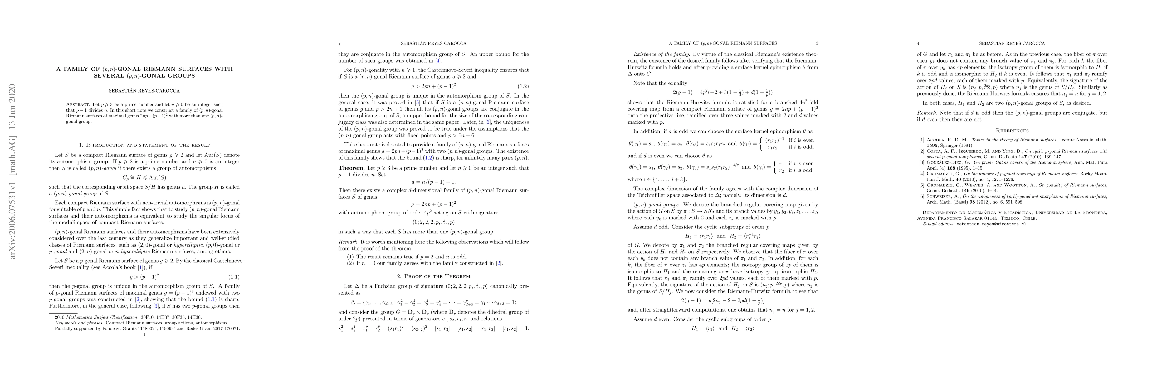 This paper constructs a family of $(p,n)$-gonal Riemann surfaces with maximal genus $2np+(p-1)^2$ for prime $p \geqslant 3$ and integer $n \geqslant 0$ where $p-1$ divides $n$, featuring more than one $(p,n)$-gonal group.