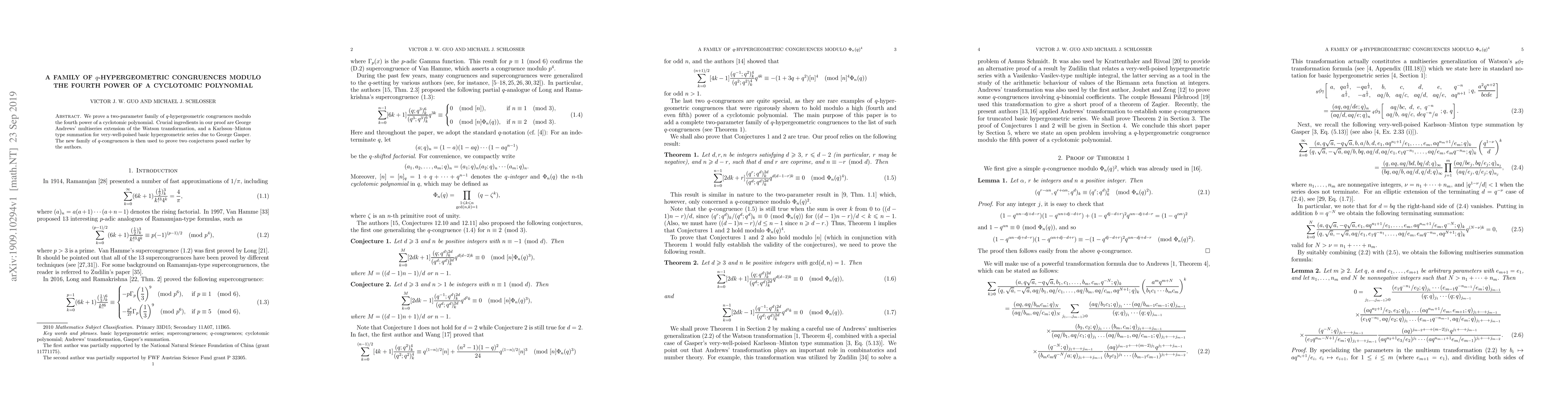 This paper proves a two-parameter family of $q$-hypergeometric congruences modulo the fourth power of a cyclotomic polynomial, utilizing George Andrews' multiseries extension of the Watson transformation and a summation result for very-well-poised basic hypergeometric series by George Gasper. The new congruences are applied to validate two earlier conjectures by the authors.