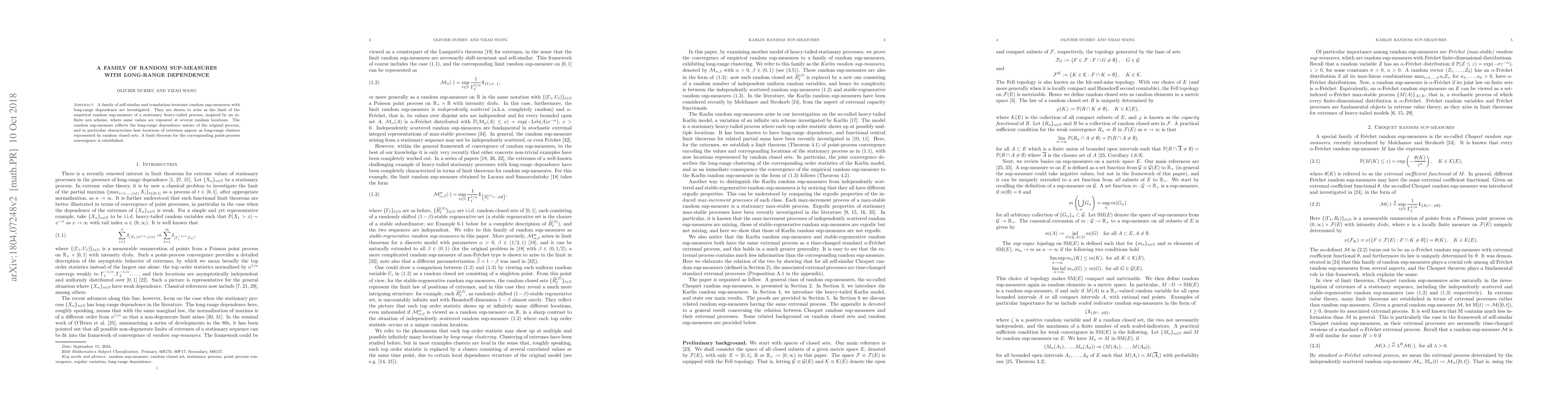 This paper investigates self-similar, translation-invariant random sup-measures with long-range dependence, arising from the empirical measures of a stationary heavy-tailed process. It establishes a limit theorem for the convergence of these measures, highlighting how extreme values cluster in long-range dependent patterns.