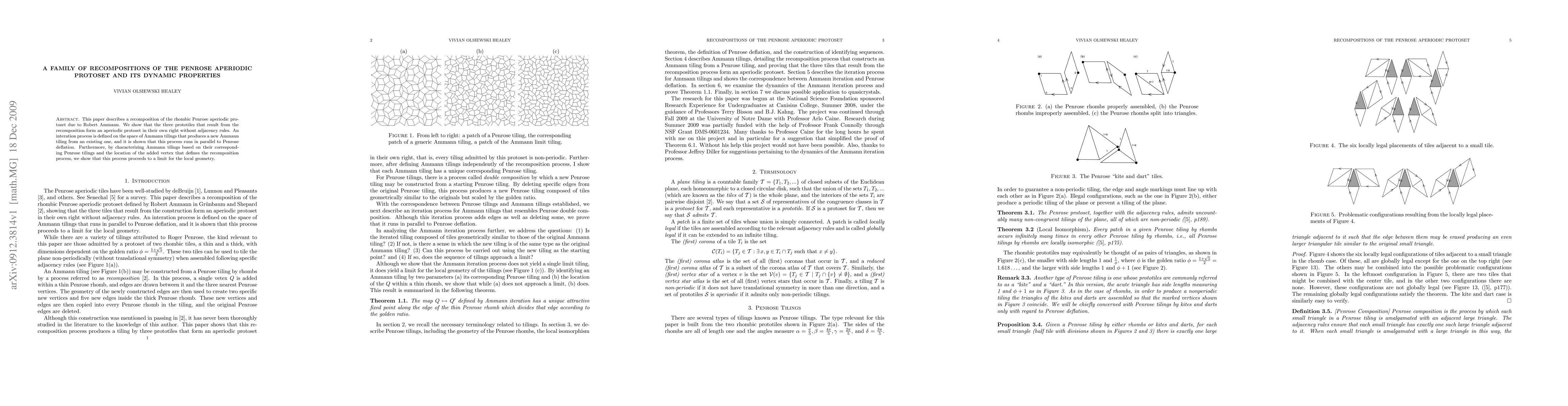This paper presents a recomposition of the Penrose rhombic aperiodic protoset by Robert Ammann, demonstrating that the resulting three prototiles form an aperiodic protoset without adjacency rules. It also introduces an iteration process on Ammann tilings that parallels Penrose deflation and shows convergence to a limit in local geometry.