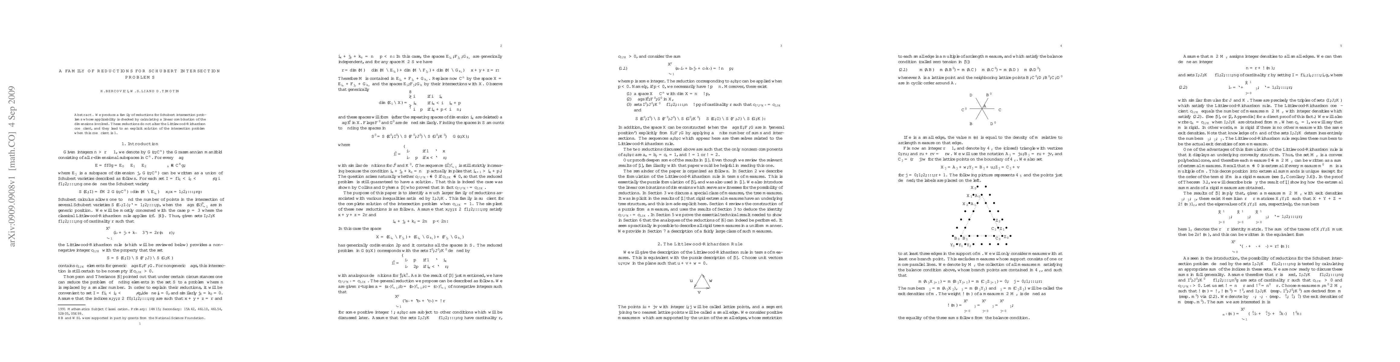 We produce a family of reductions for Schubert intersection problems whose applicability is checked by calculating a linear combination of the dimensions involved. These reductions do not alter the Littlewood-Richardson coefficient, and they lead to an explicit solution of the intersection problem when this coefficient is 1.