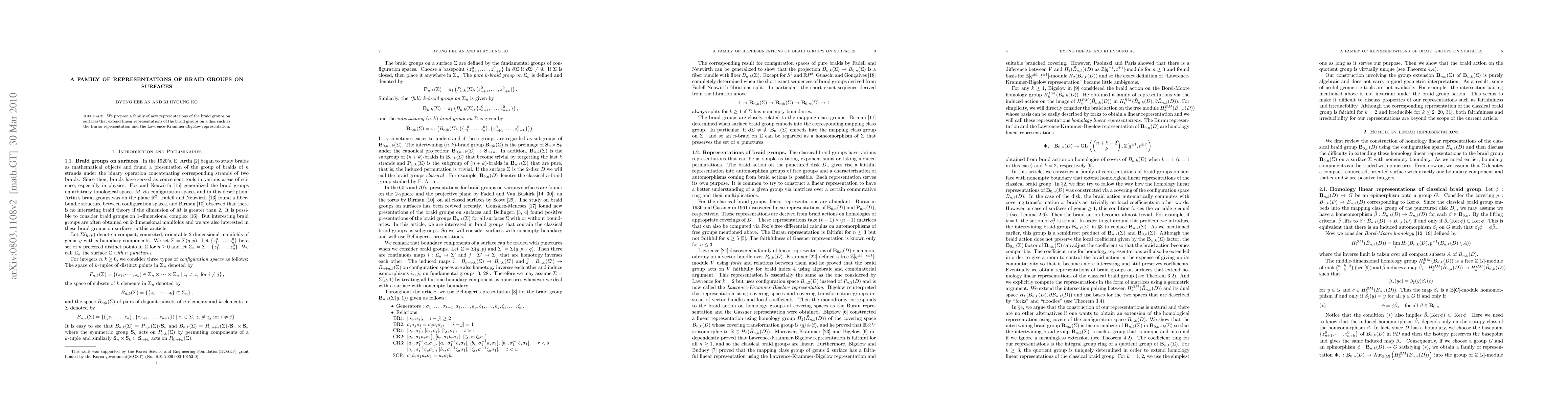 Summary: This paper introduces a new set of representations for braid groups on surfaces, expanding upon existing linear representations like the Burau and Lawrence-Krammer-Bigelow representations. These new representations aim to extend the understanding of braid group dynamics on more complex geometric surfaces.