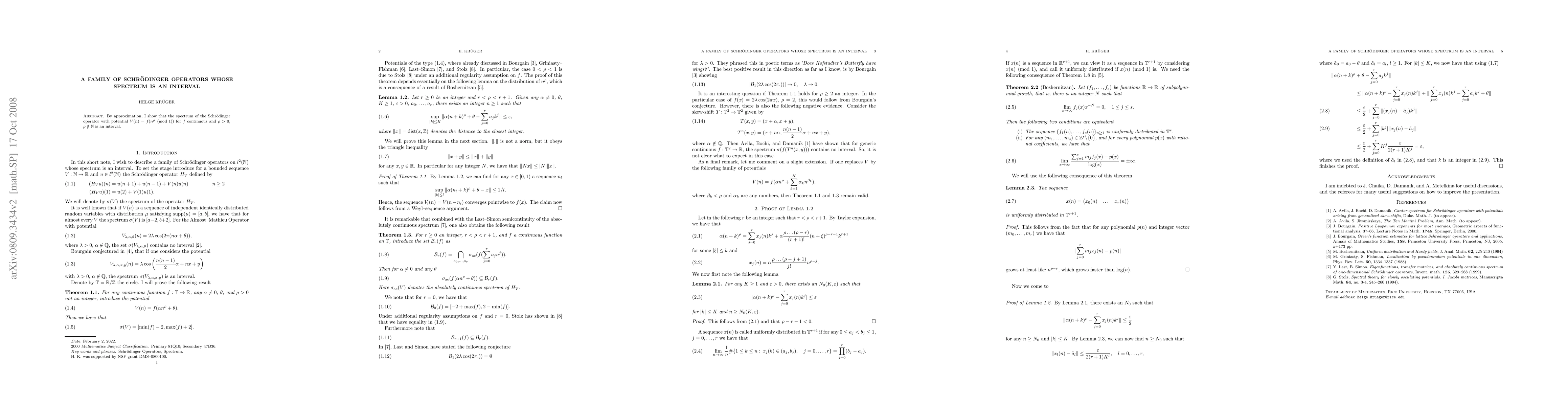 The research demonstrates that Schrödinger operators with a specific potential function have spectra that form intervals. This is achieved through approximation methods, revealing significant insights into the spectral properties of such operators for continuous functions f and irrational ho not being a natural number.