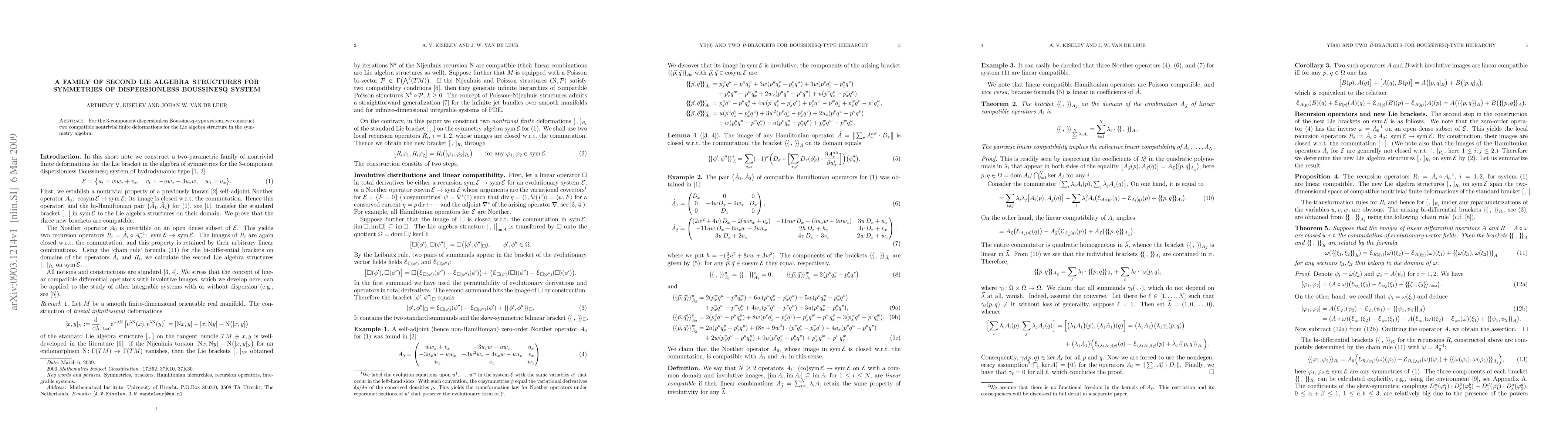 For the 3-component dispersionless Boussinesq-type system, we construct two compatible nontrivial finite deformations for the Lie algebra structure in the symmetry algebra.