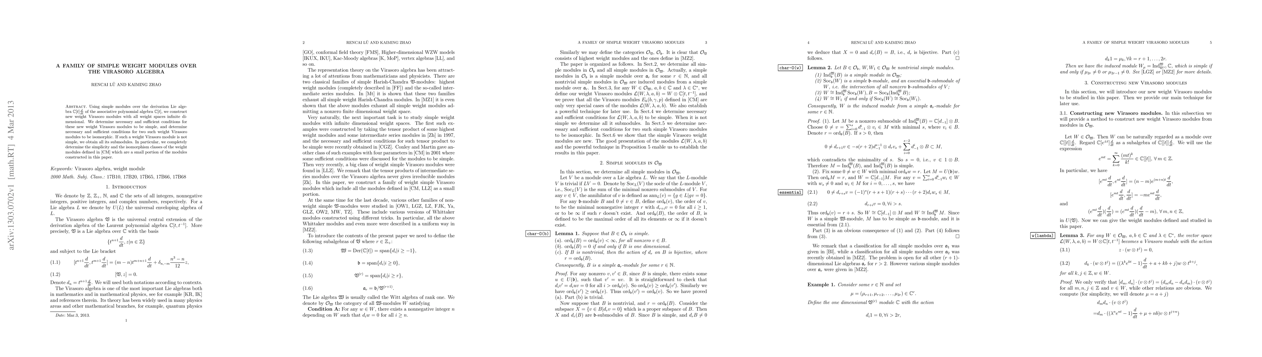 This paper constructs new weight Virasoro modules using simple derivation Lie algebra modules, determining conditions for these modules to be simple and isomorphic. It also identifies all submodules for non-simple cases and classifies the simplicity and isomorphism classes of specific modules previously defined.