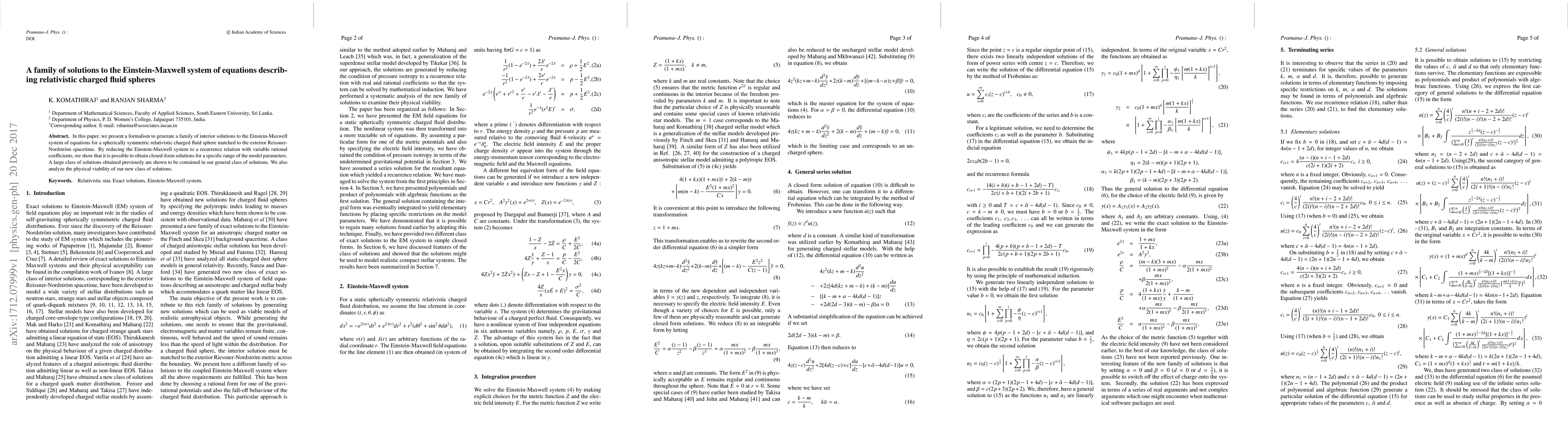 In this paper, we present a formalism to generate a family of interior solutions to the Einstein-Maxwell system of equations for a spherically symmetric relativistic charged fluid sphere matched to the exterior Reissner-Nordstr\"om spacetime. By reducing the Einstein-Maxwell system to a recurrence relation with variable rational coefficients, we show that it is possible to obtain closed-form solutions for a specific range of the model parameters. A large class of solutions obtained previously are shown to be contained in our general class of solutions. We also analyze the physical viability of our new class of solutions.