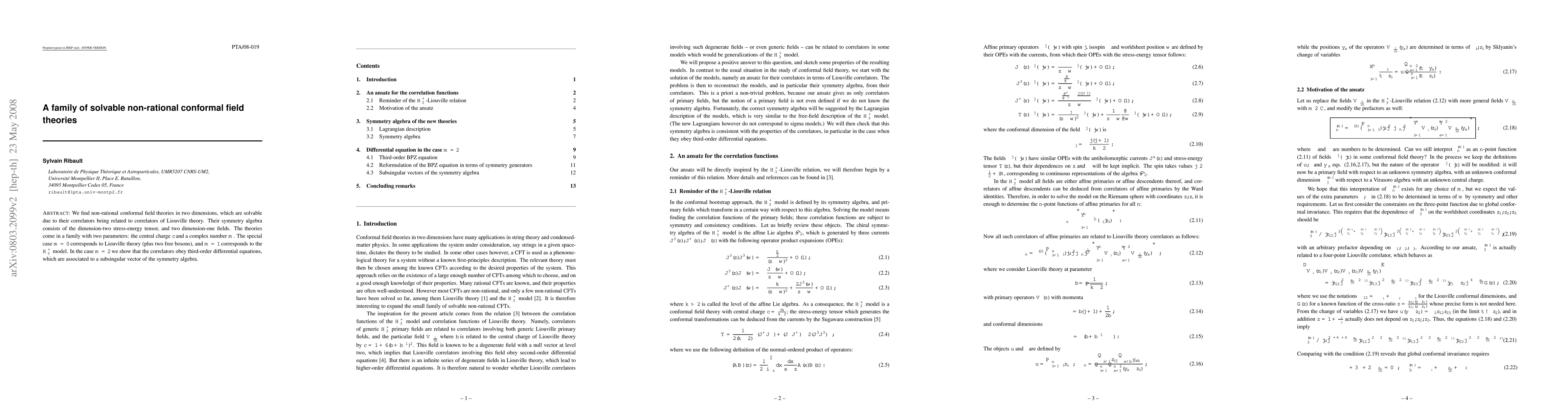 This paper identifies a family of solvable, non-rational conformal field theories in two dimensions, whose correlators are linked to those of Liouville theory. The theories feature a symmetry algebra with a dimension-two stress-energy tensor and two dimension-one fields, parameterized by central charge c and a complex number m.