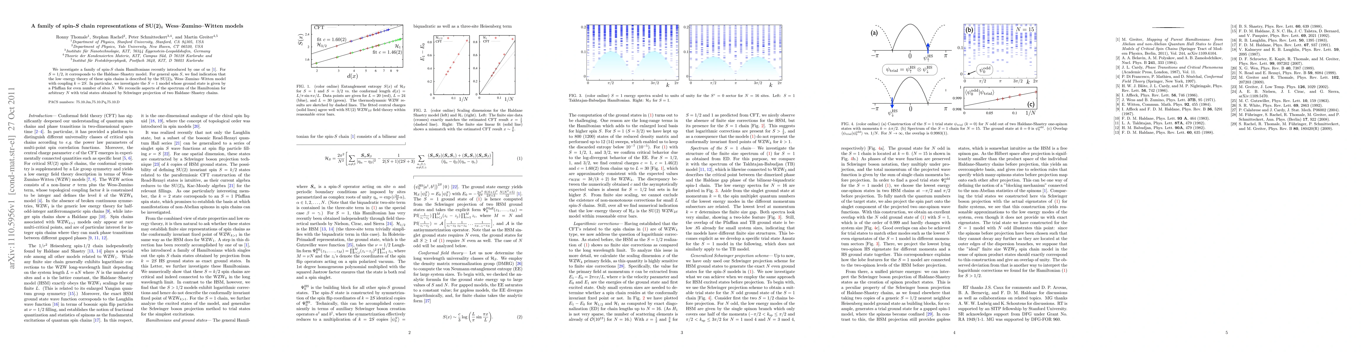This paper explores spin-S chain Hamiltonians, particularly focusing on the Haldane-Shastry model for S=1/2, and finds that these chains are described by the SU(2)_k Wess-Zumino-Witten model with k=2S. The study highlights the S=1 model's Pfaffian ground state for even site numbers and aligns its spectrum with trial states derived from projected Haldane-Shastry chains.