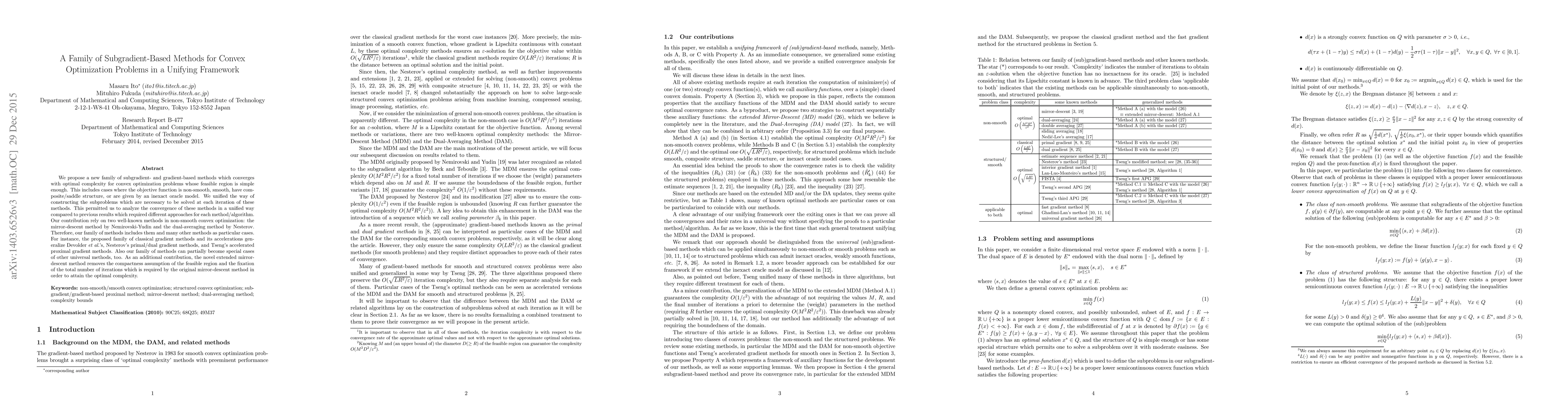 We propose a new family of subgradient- and gradient-based methods which converges with optimal complexity for convex optimization problems whose feasible region is simple enough. This includes cases where the objective function is non-smooth, smooth, have composite/saddle structure, or are given by an inexact oracle model. We unified the way of constructing the subproblems which are necessary to be solved at each iteration of these methods. This permitted us to analyze the convergence of these methods in a unified way compared to previous results which required different approaches for each method/algorithm. Our contribution rely on two well-known methods in non-smooth convex optimization: the mirror-descent method by Nemirovski-Yudin and the dual-averaging method by Nesterov. Therefore, our family of methods includes them and many other methods as particular cases. For instance, the proposed family of classical gradient methods and its accelerations generalize Devolder et al.'s, Nesterov's primal/dual gradient methods, and Tseng's accelerated proximal gradient methods. Also our family of methods can partially become special cases of other universal methods, too. As an additional contribution, the novel extended mirror-descent method removes the compactness assumption of the feasible region and the fixation of the total number of iterations which is required by the original mirror-descent method in order to attain the optimal complexity.